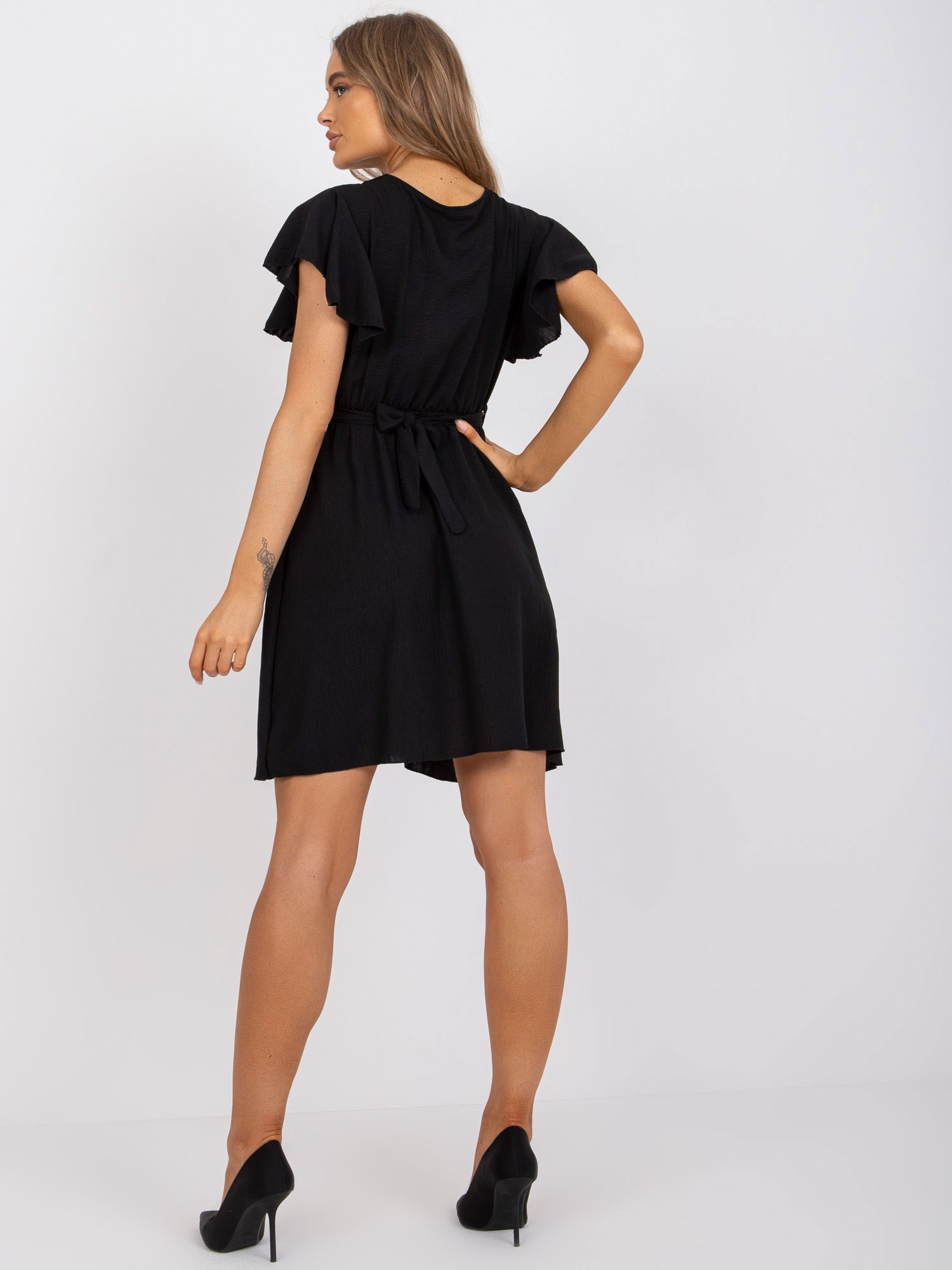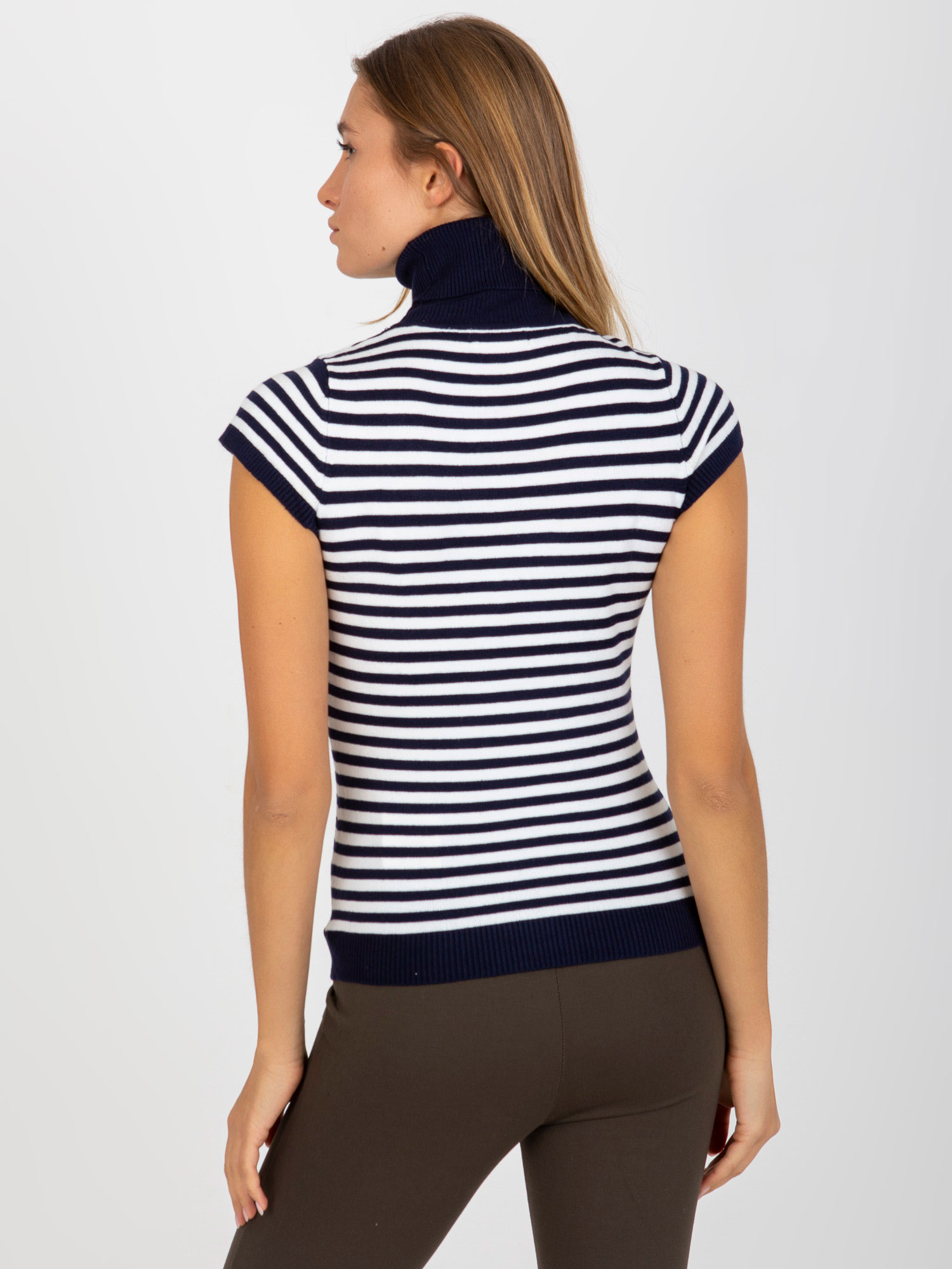 Modelka ma na sobie rozmiar S. Wymiary modelki: wzrost 173 cm, biust 85 cm, talia 62 cm, biodra 95 cm.