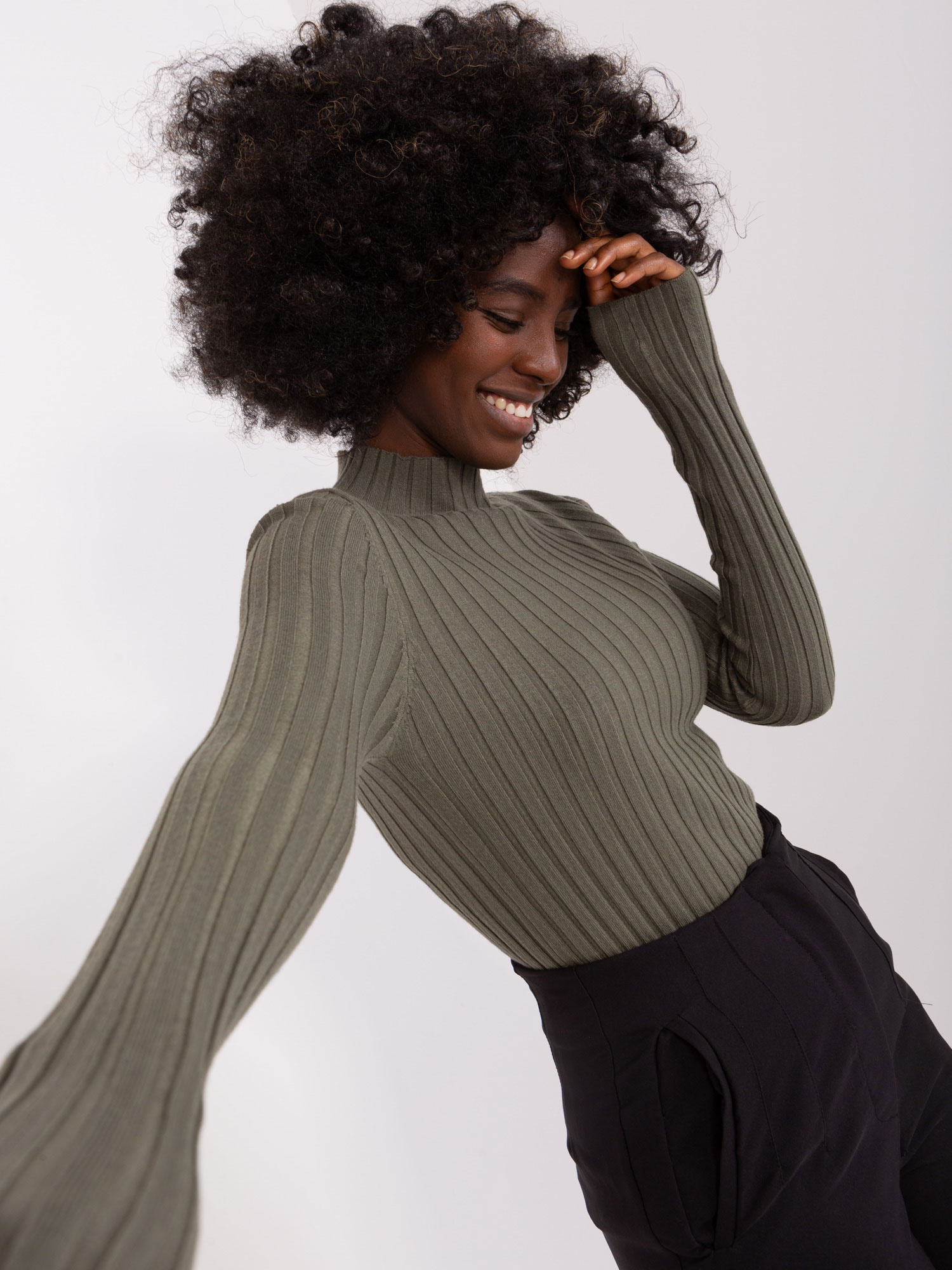 Khaki szerokie spodnie kuloty materiałowe z wełny .