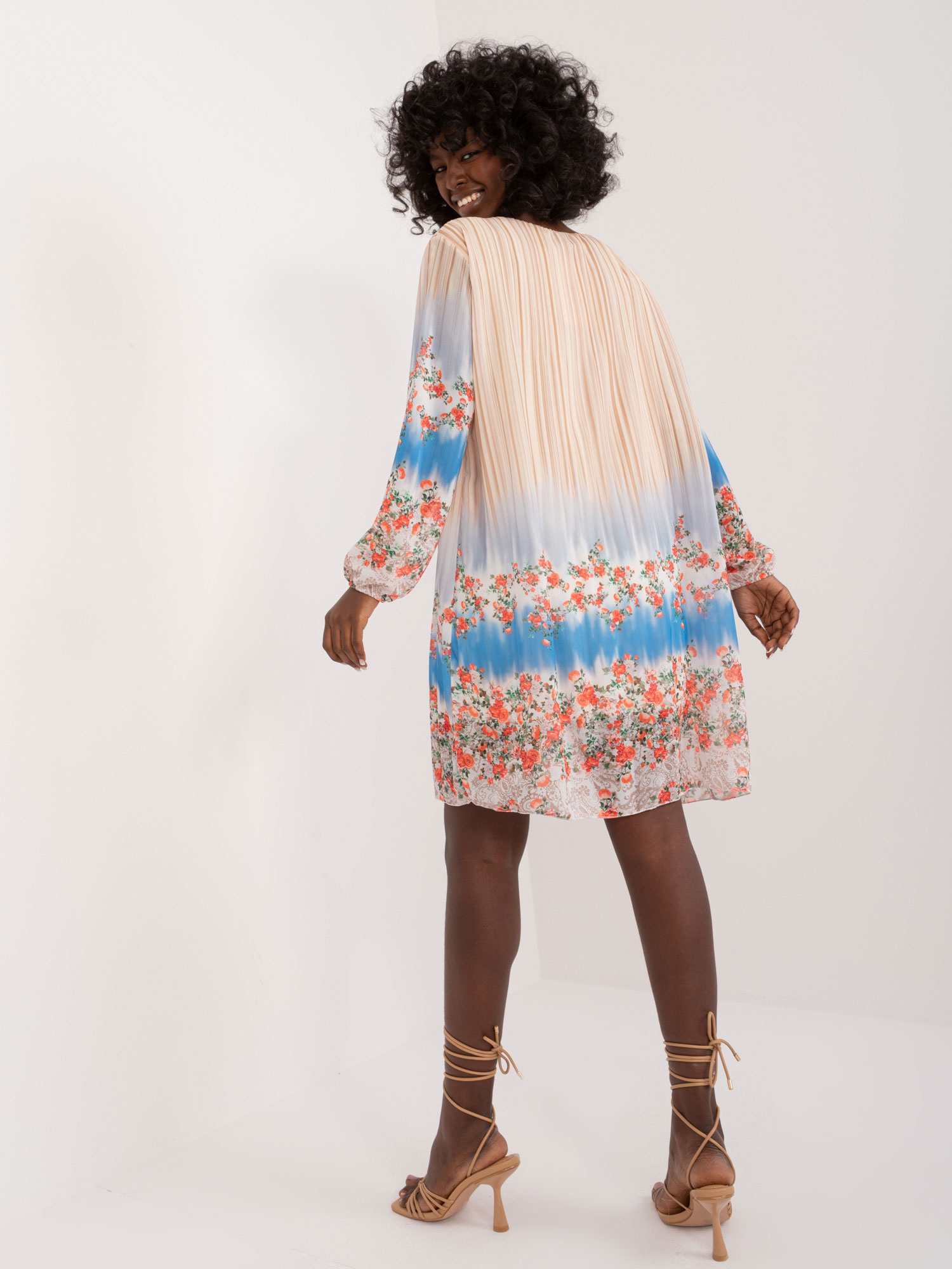 Wymiary sukienki w rozmiarze one size mierzone na płasko: szerokość pod pachami – 52 cm, długość rękawa – 54 cm, długość całkowita – 86 cm.