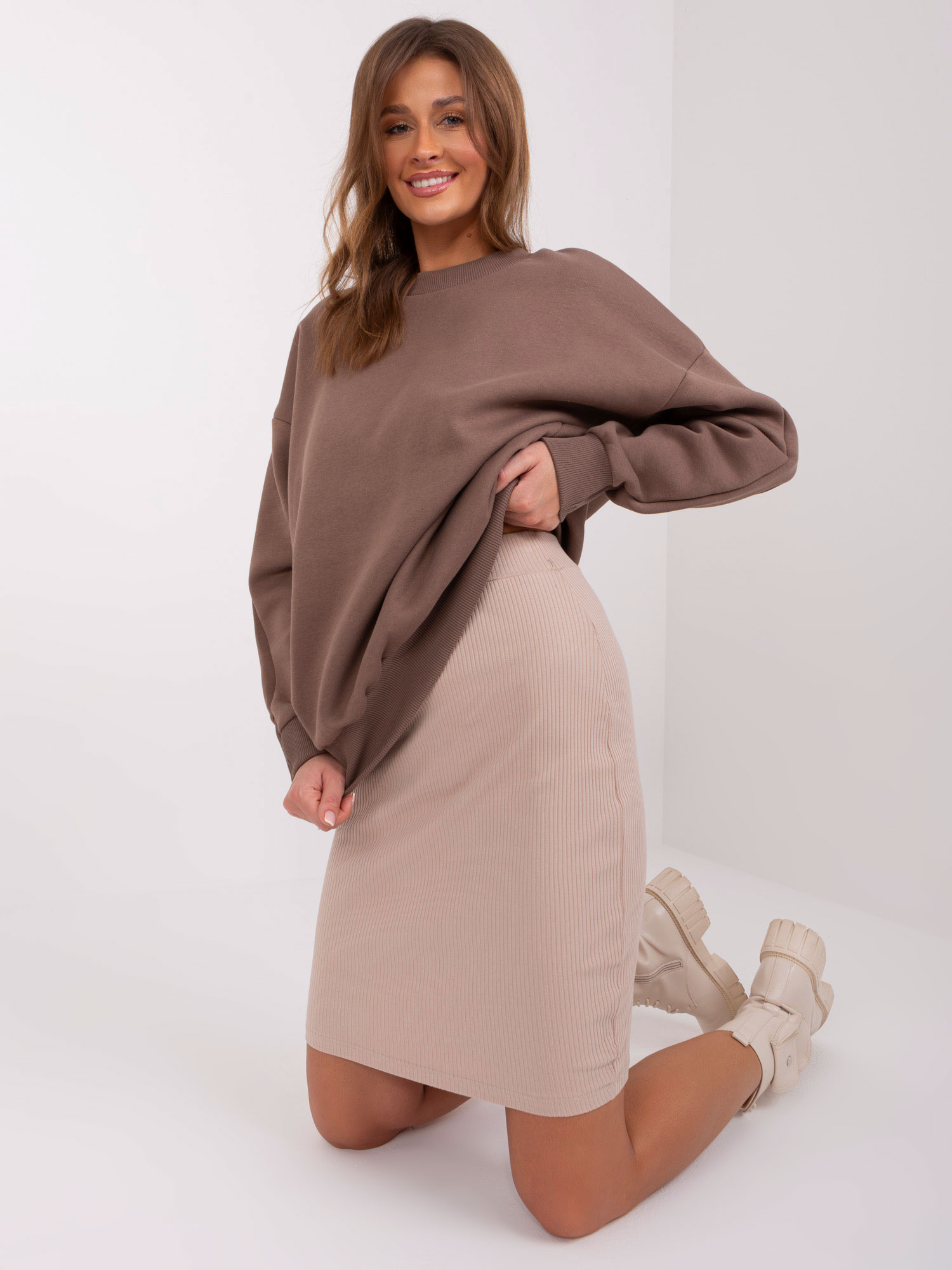 Modelka ma na sobie rozmiar 36. Wymiary modelki: wzrost 175 cm, biust 84 cm, talia 61 cm, biodra 91 cm.