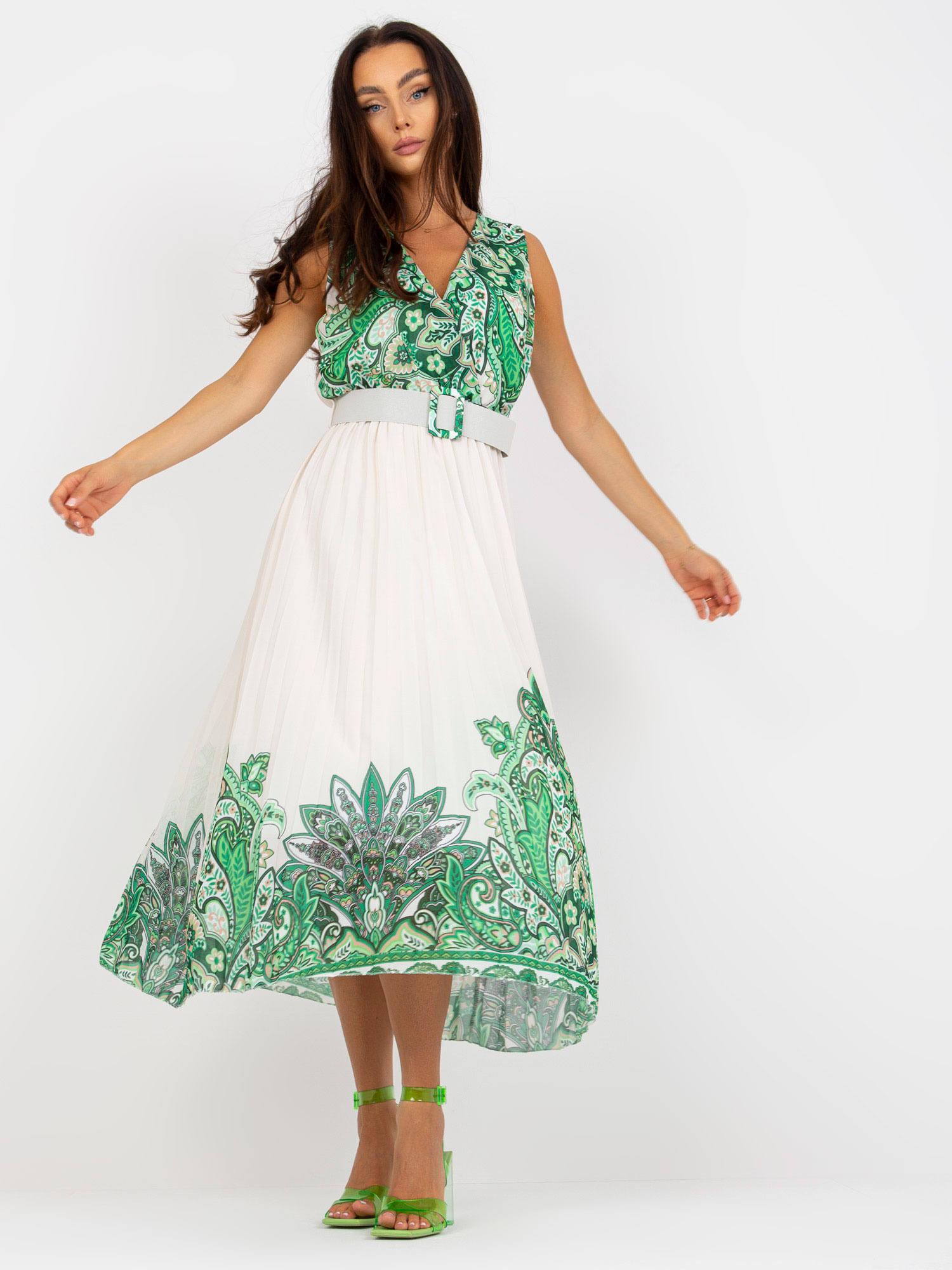 Wymiary sukienki w rozmiarze one size mierzone na płasko: szerokość pod pachami – 40 cm, długość całkowita – 126 cm.