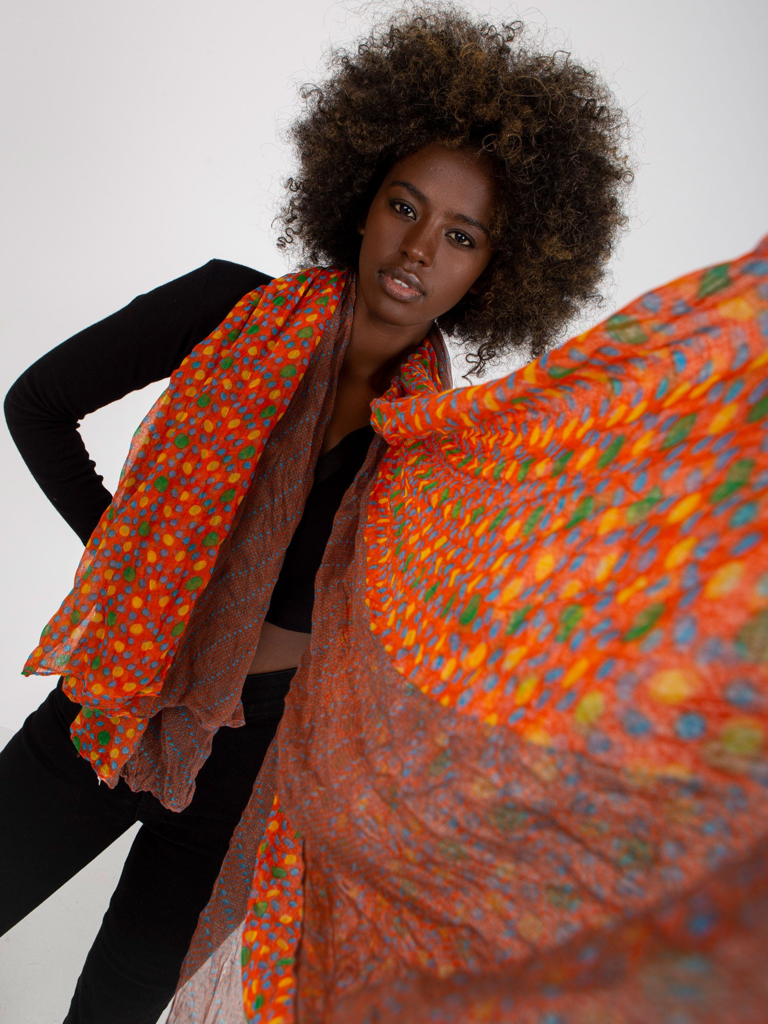 Modelka ma na sobie rozmiar S/M. Wymiary modelki: wzrost 162 cm, biust 80 cm, talia 63 cm, biodra 80 cm.
