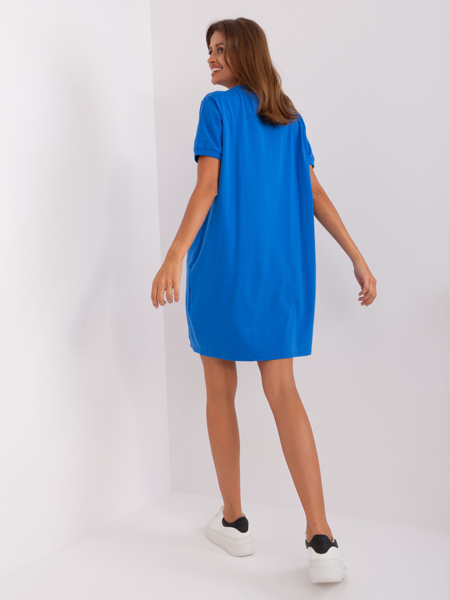 Ciemnoniebieska bawełniana sukienka basic .