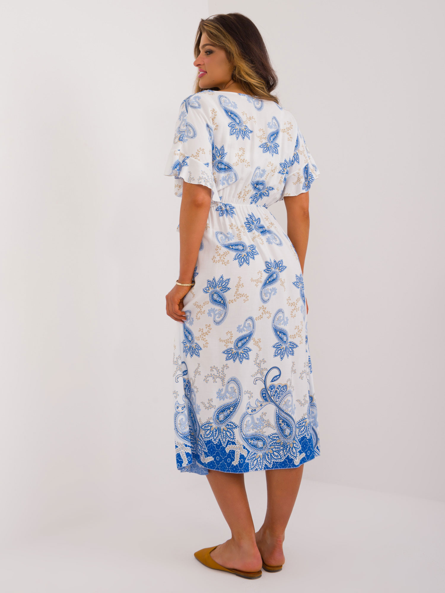 Wymiary sukienki w rozmiarze one size mierzone na płasko: szerokość pod pachami – 54 cm, długość całkowita – 122 cm.