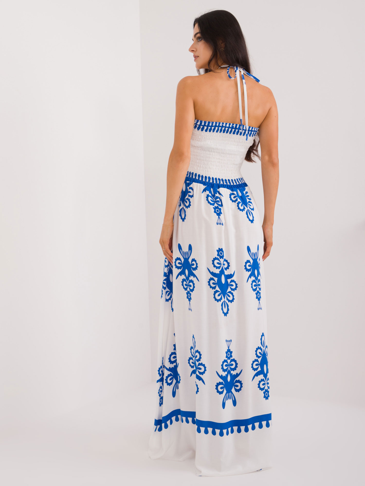 Wymiary sukienki w rozmiarze one size mierzone na płasko: szerokość pod pachami – 32 cm (materiał rozciągliwy), długość całkowita – 133 cm.
