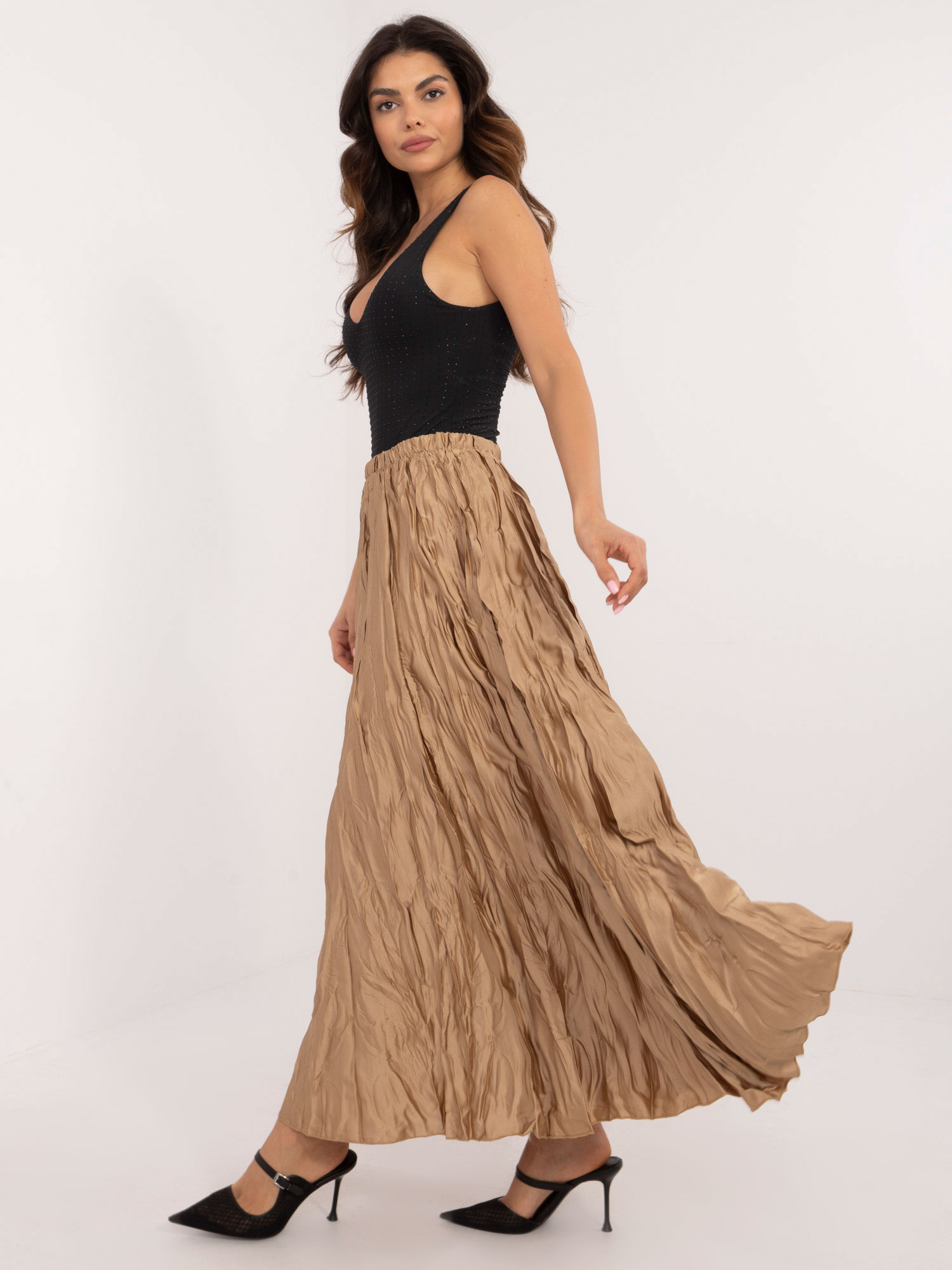 Modelka ma na sobie rozmiar S. Wymiary modelki: wzrost 167 cm, biust 73 cm, talia 64 cm, biodra 91 cm.