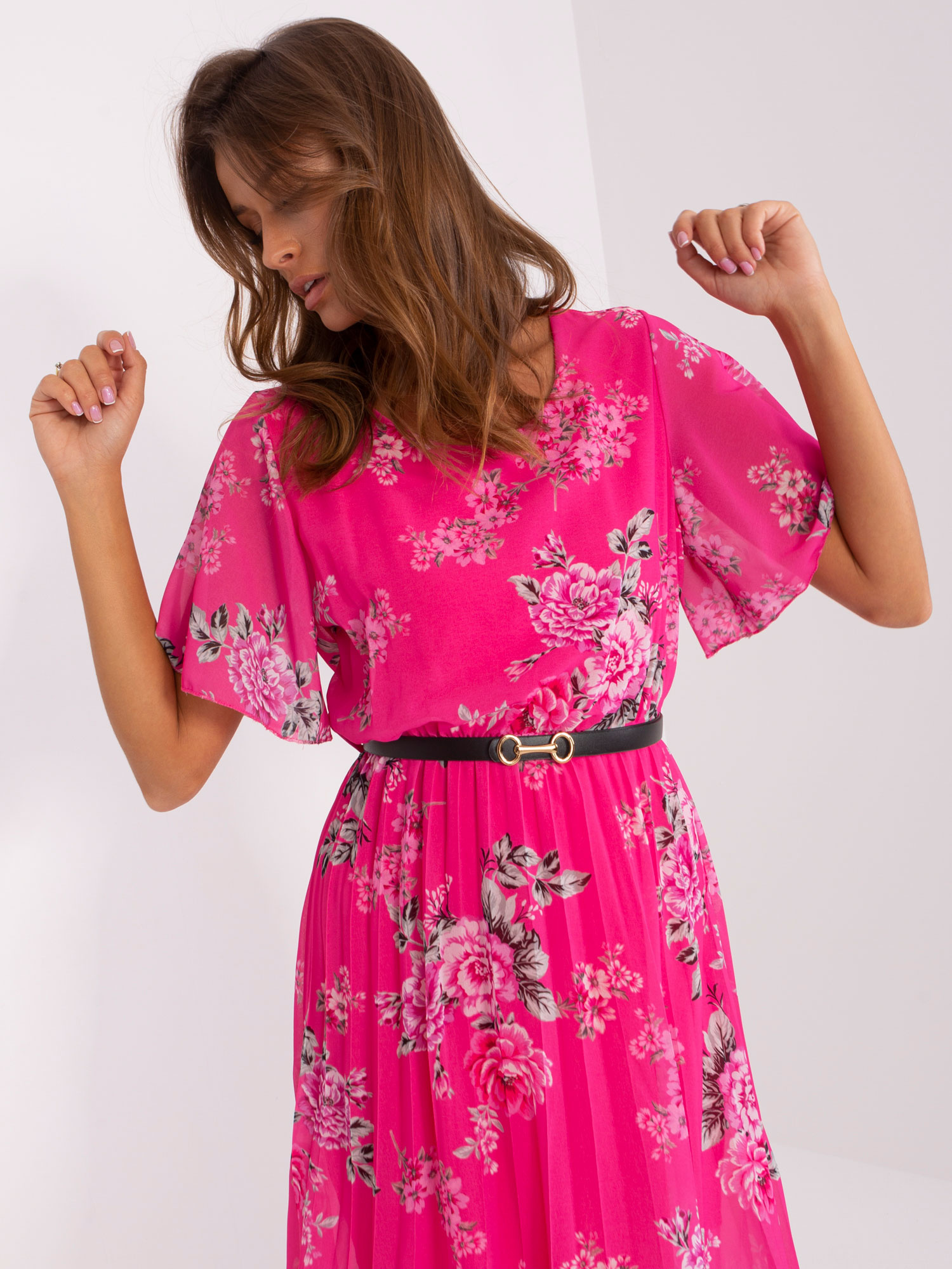 Ciemnoróżowa sukienka w kwiaty w romantycznym stylu .
