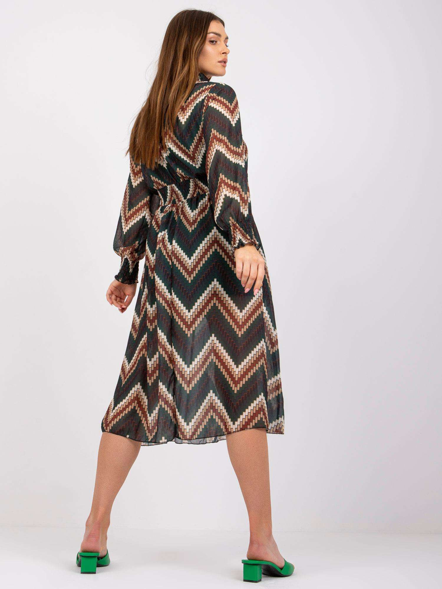 Wymiary sukienki w rozmiarze one size mierzone na płasko: szerokość pod pachami – 55 cm, długość całkowita – 144 cm.