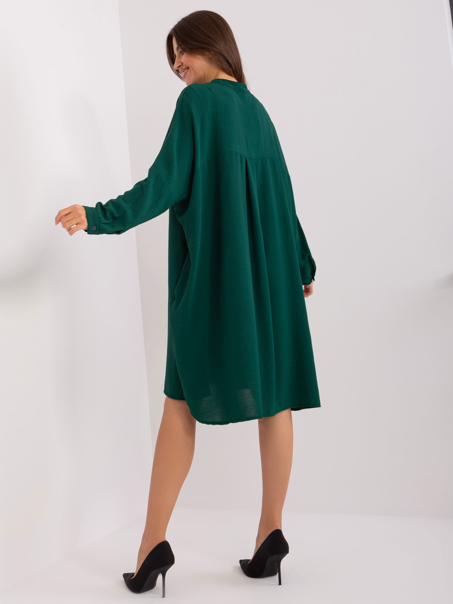 Wymiary sukienki w rozmiarze one size mierzone na płasko: szerokość pod pachami – 86 cm, długość rękawa – 55 cm, długość całkowita – 97 cm.