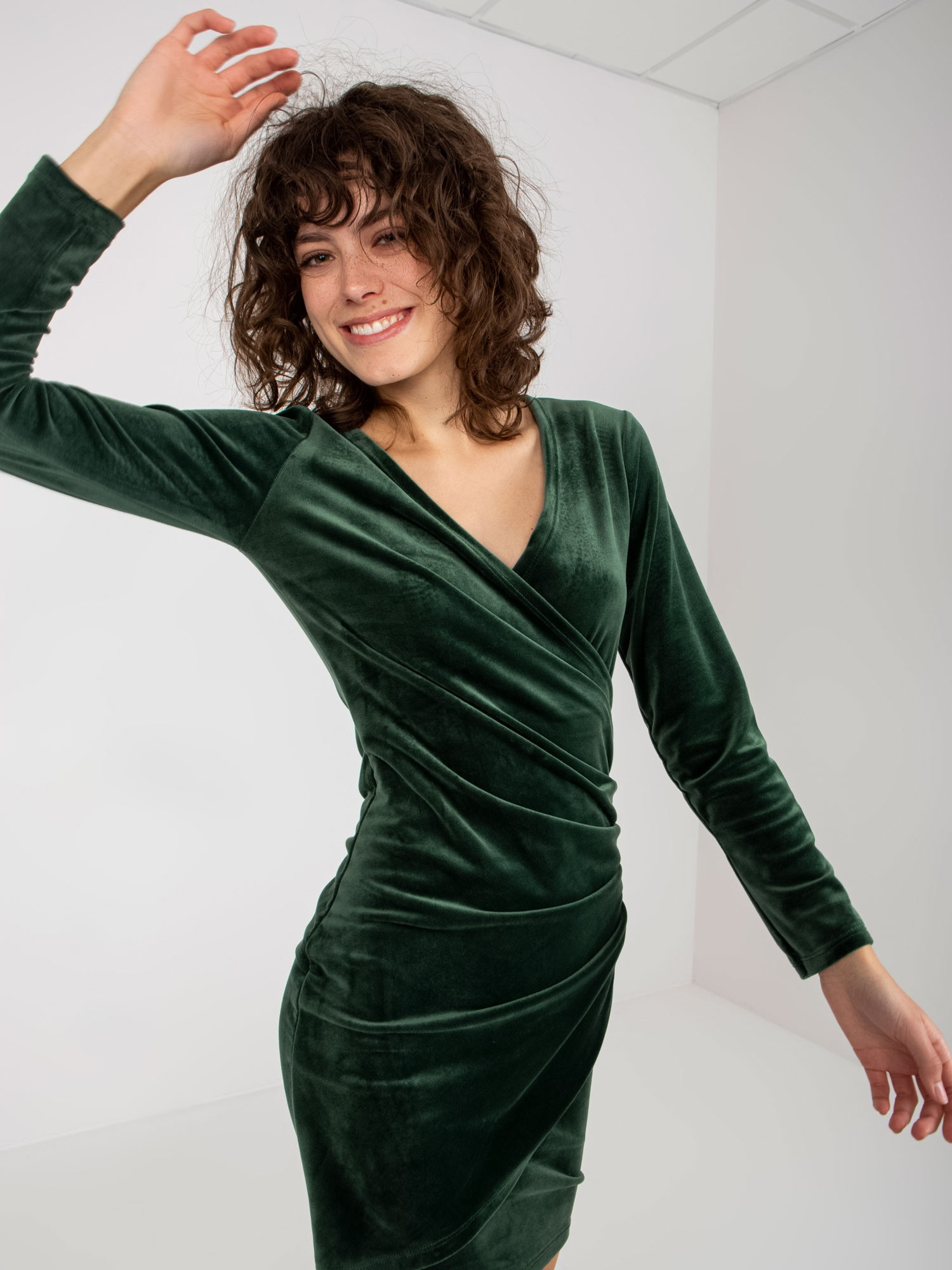 Ciemnozielona mini sukienka koktajlowa z weluru RUE PARIS .