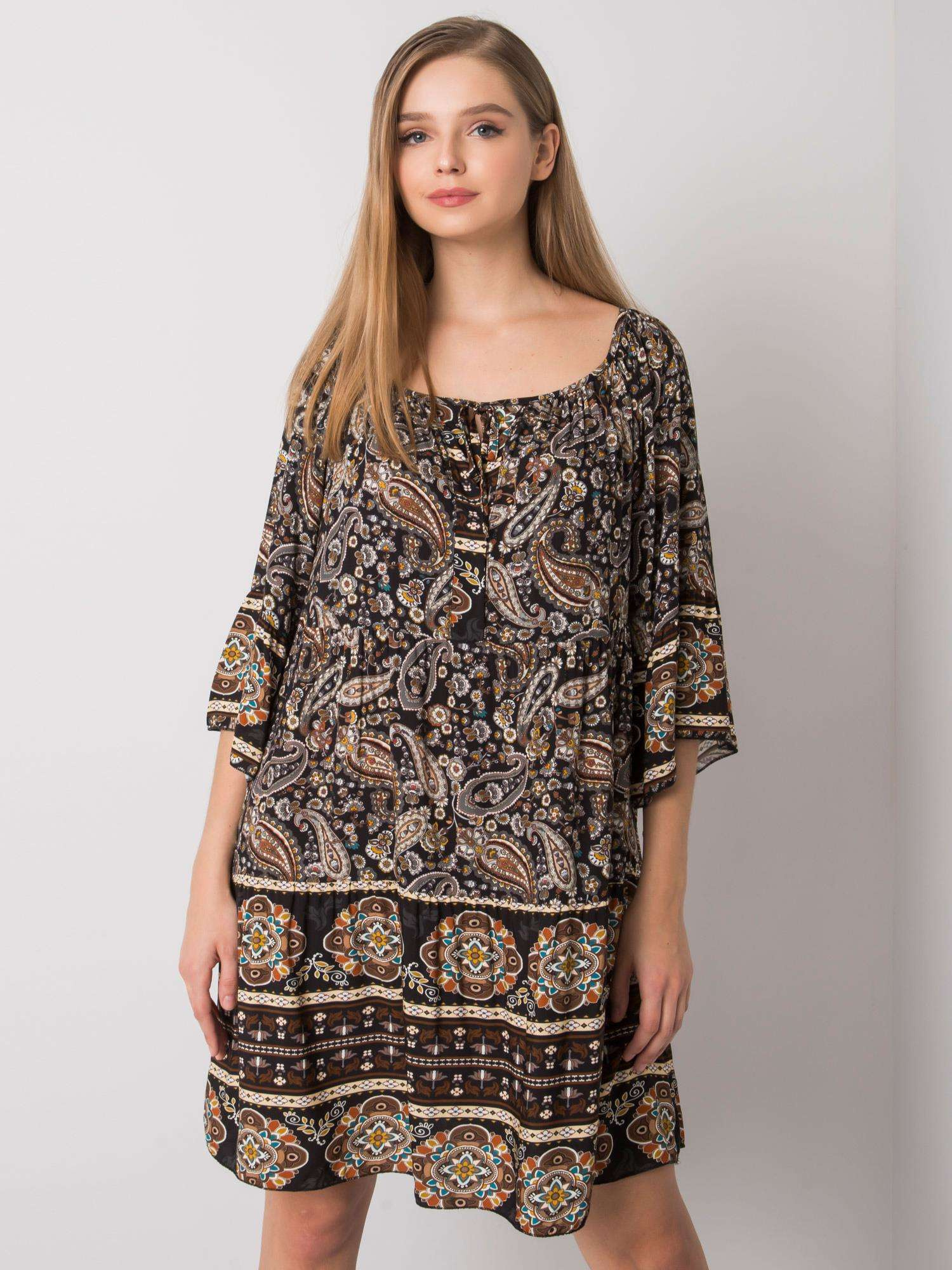 OCH BELLA Czarna wzorzysta sukienka oversize