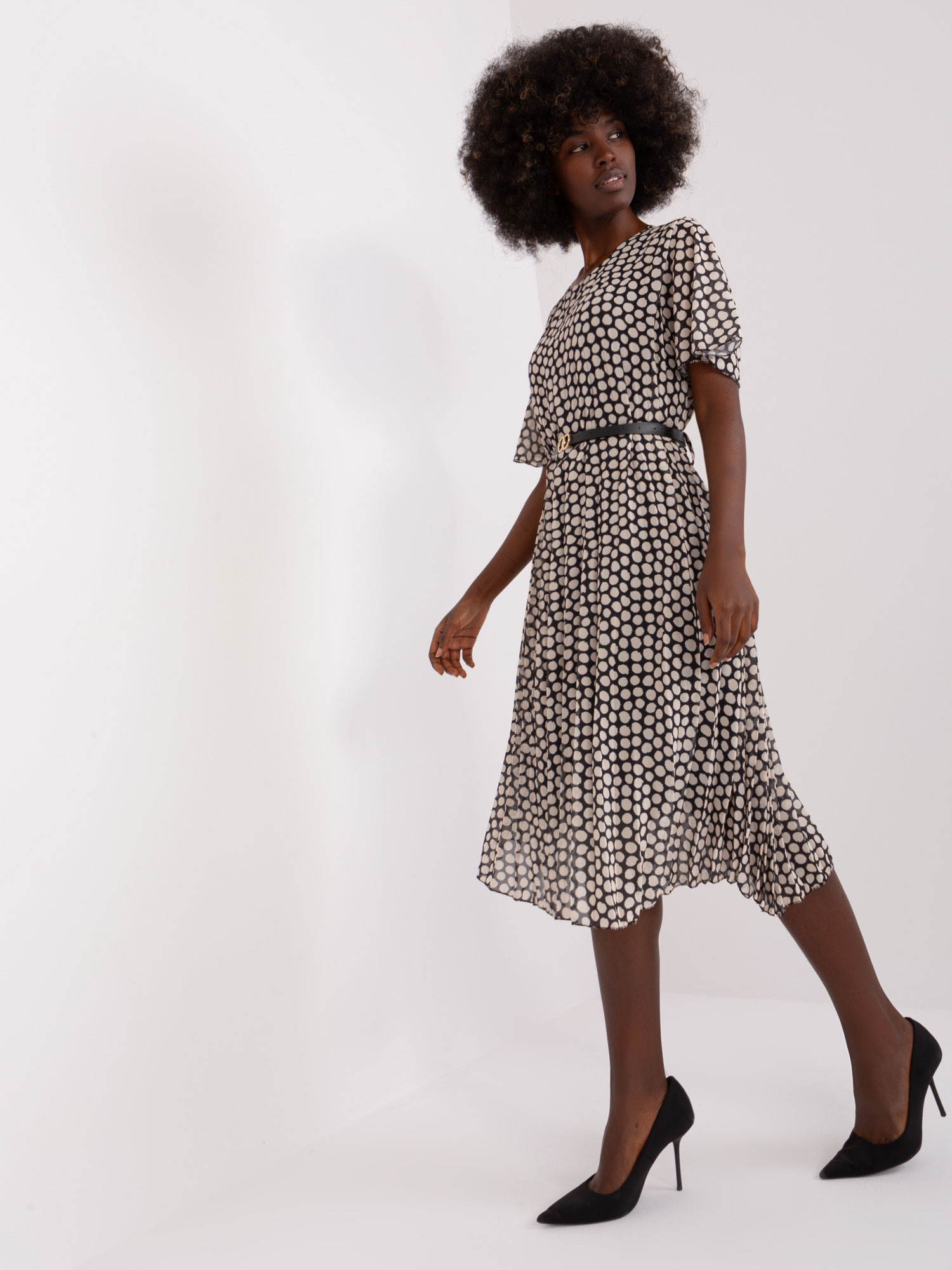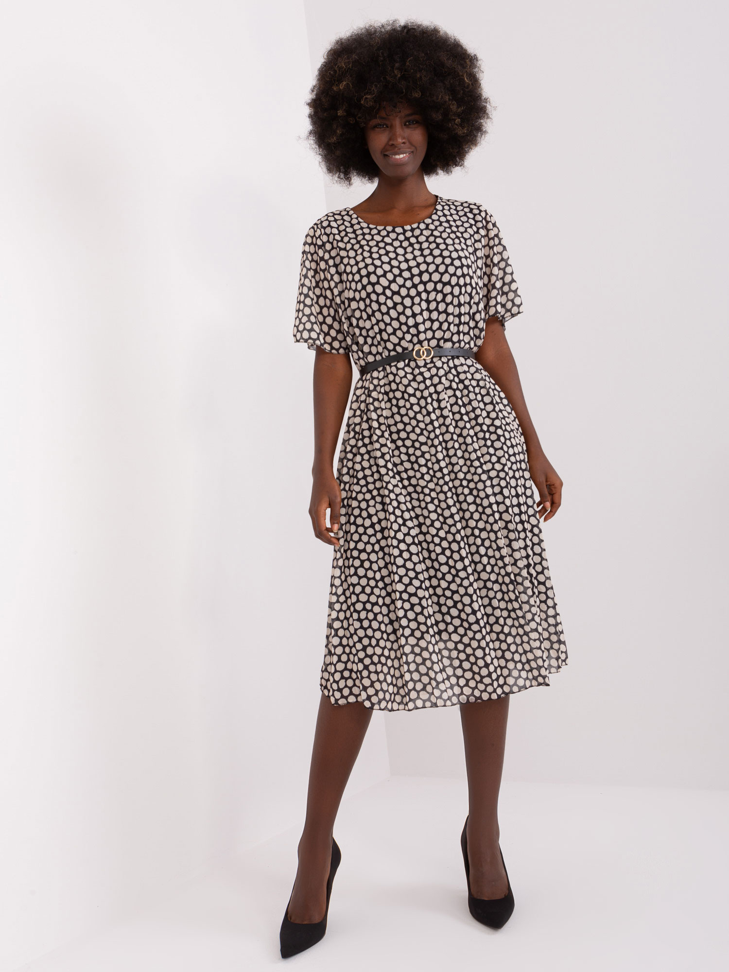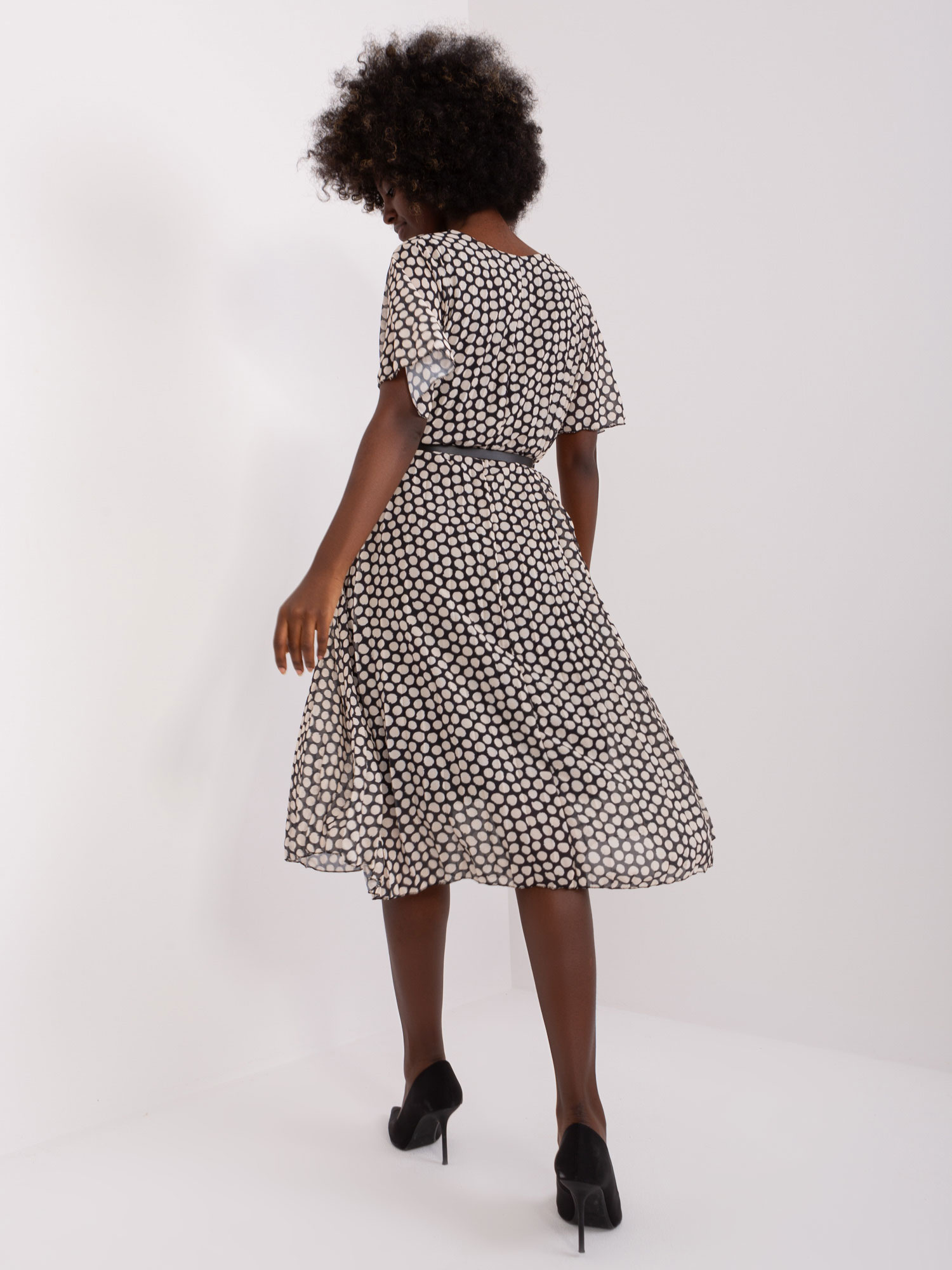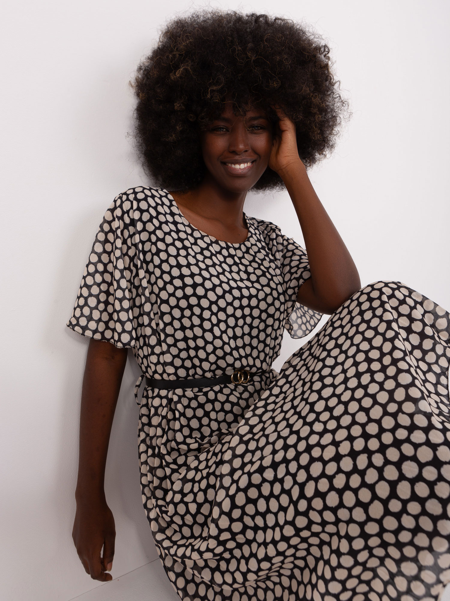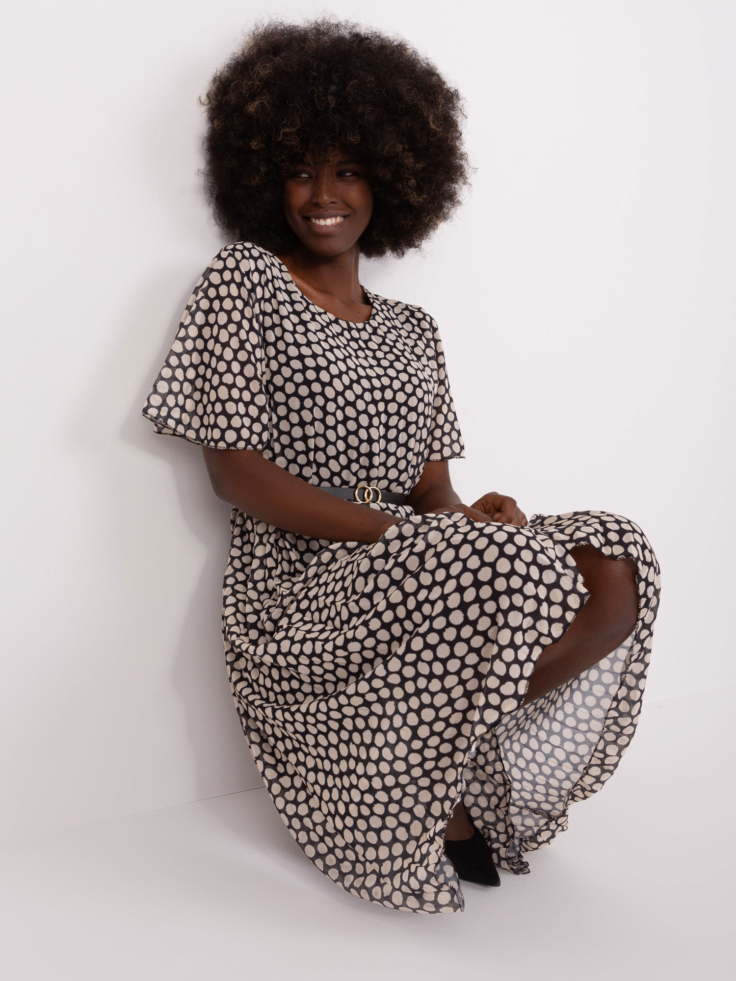 Wymiary sukienki w rozmiarze one size mierzone na płasko: szerokość sukienki pod pachami – 58 cm, długość sukienki – 110 cm.