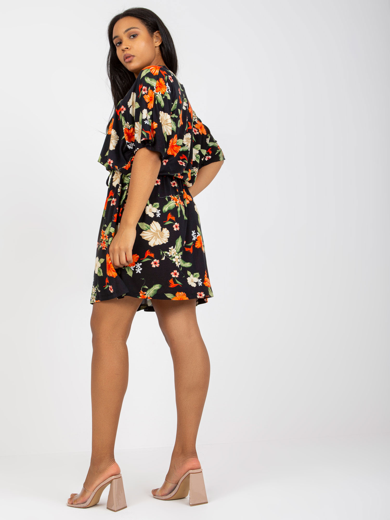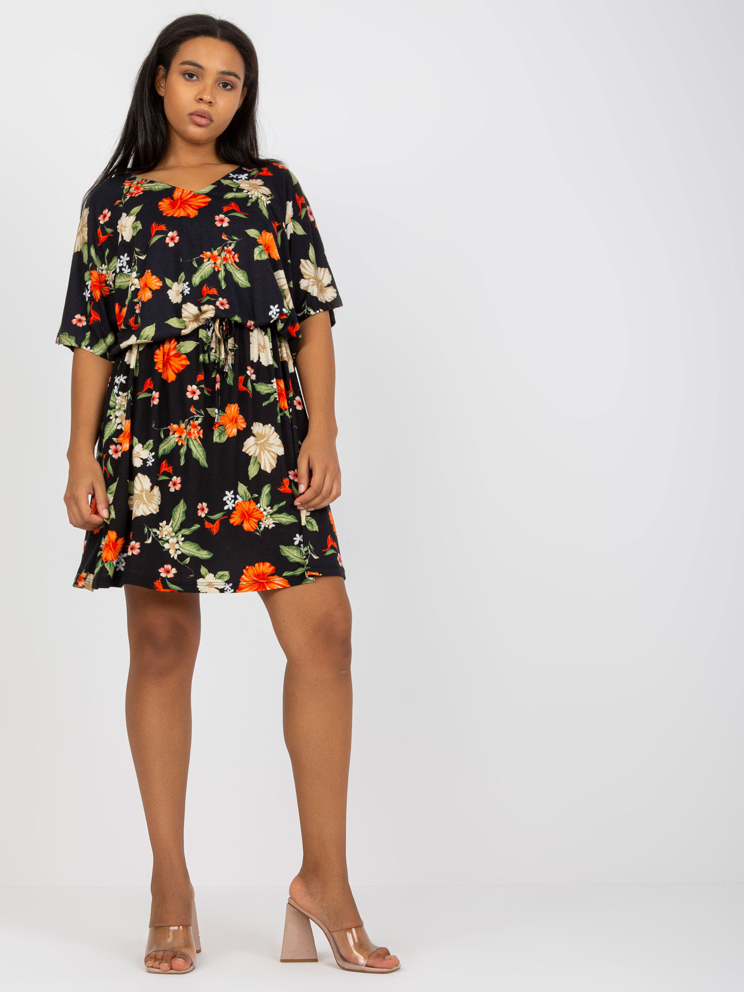 Czarno-czerwona mini sukienka plus size w kwiaty .