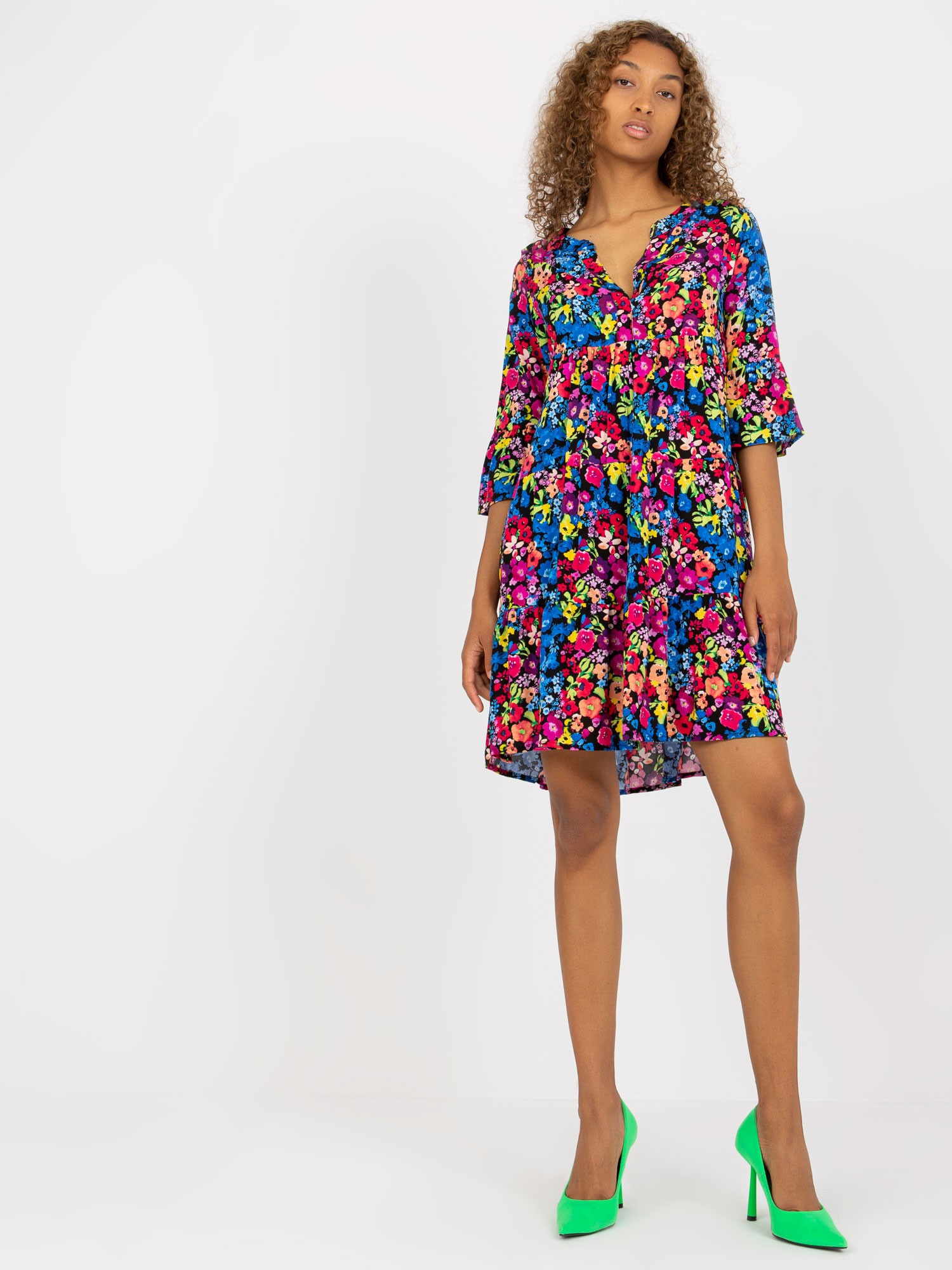 Sukienka w kolorowe kwiaty z rękawem 3/4 SUBLEVEL .