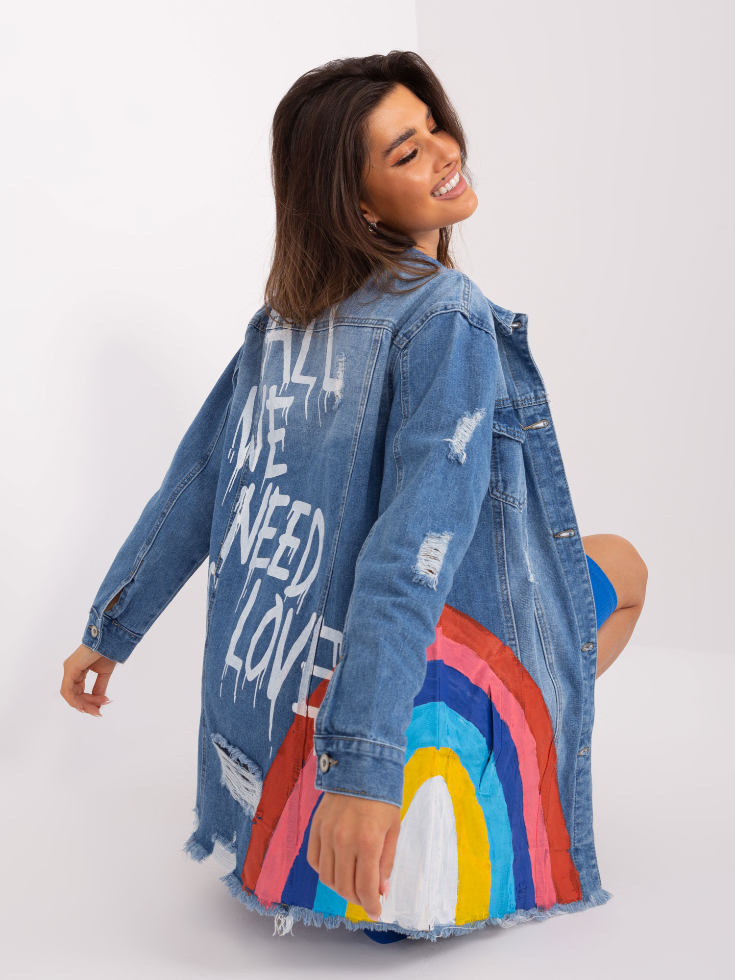 • Modelka: Modelka ma na sobie rozmiar S. Wymiary modelki: wzrost 168 cm, biust 89 cm, talia 60 cm, biodra 91 cm