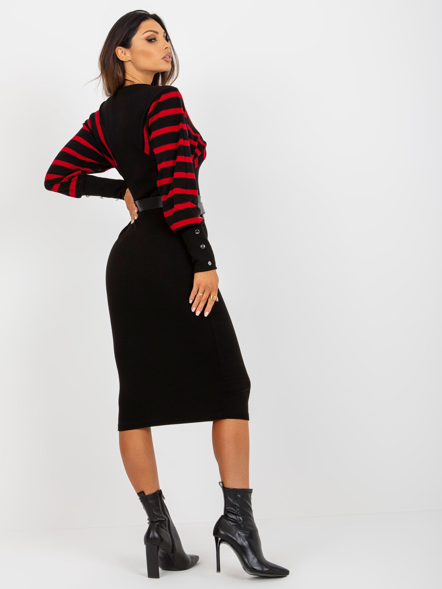 Czarno-czerwona midi sukienka dzianinowa z dekoltem V OCH BELLA .