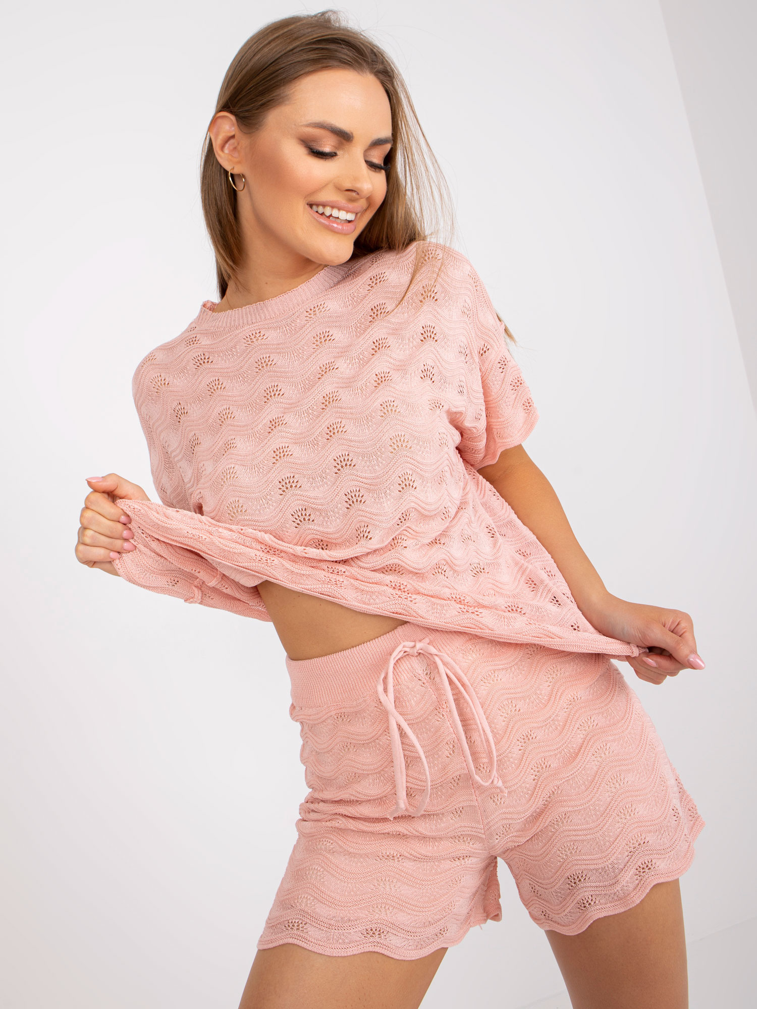 Modelka ma na sobie rozmiar one size. Wymiary modelki: wzrost 161 cm, biust 81 cm, talia 63 cm, biodra 89 cm.