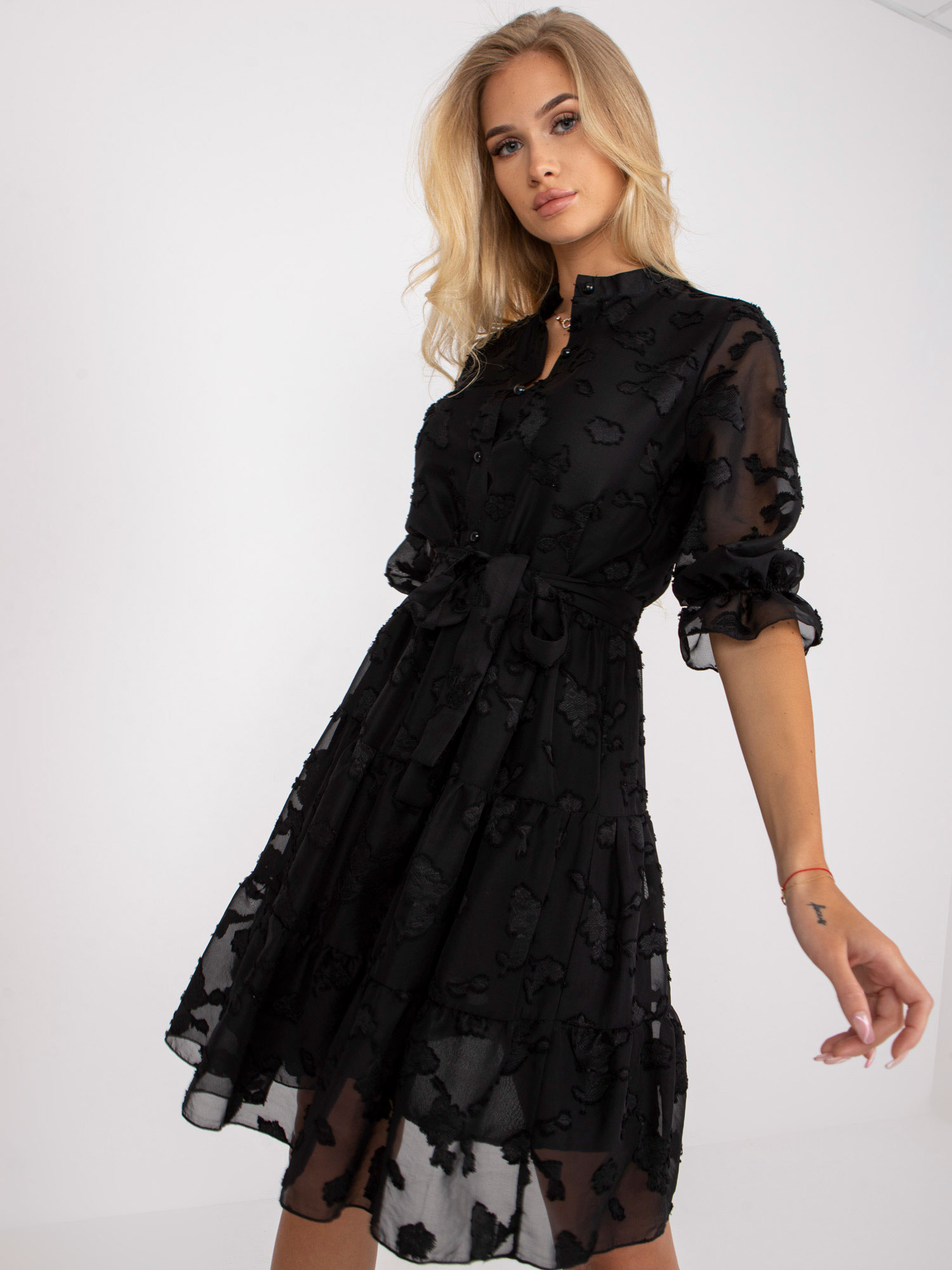 Wymiary sukienki w rozmiarze 36 mierzone na płasko: szerokość pod pachami – 49 cm, długość rękawa – 44 cm, długość całkowita – 98 cm.