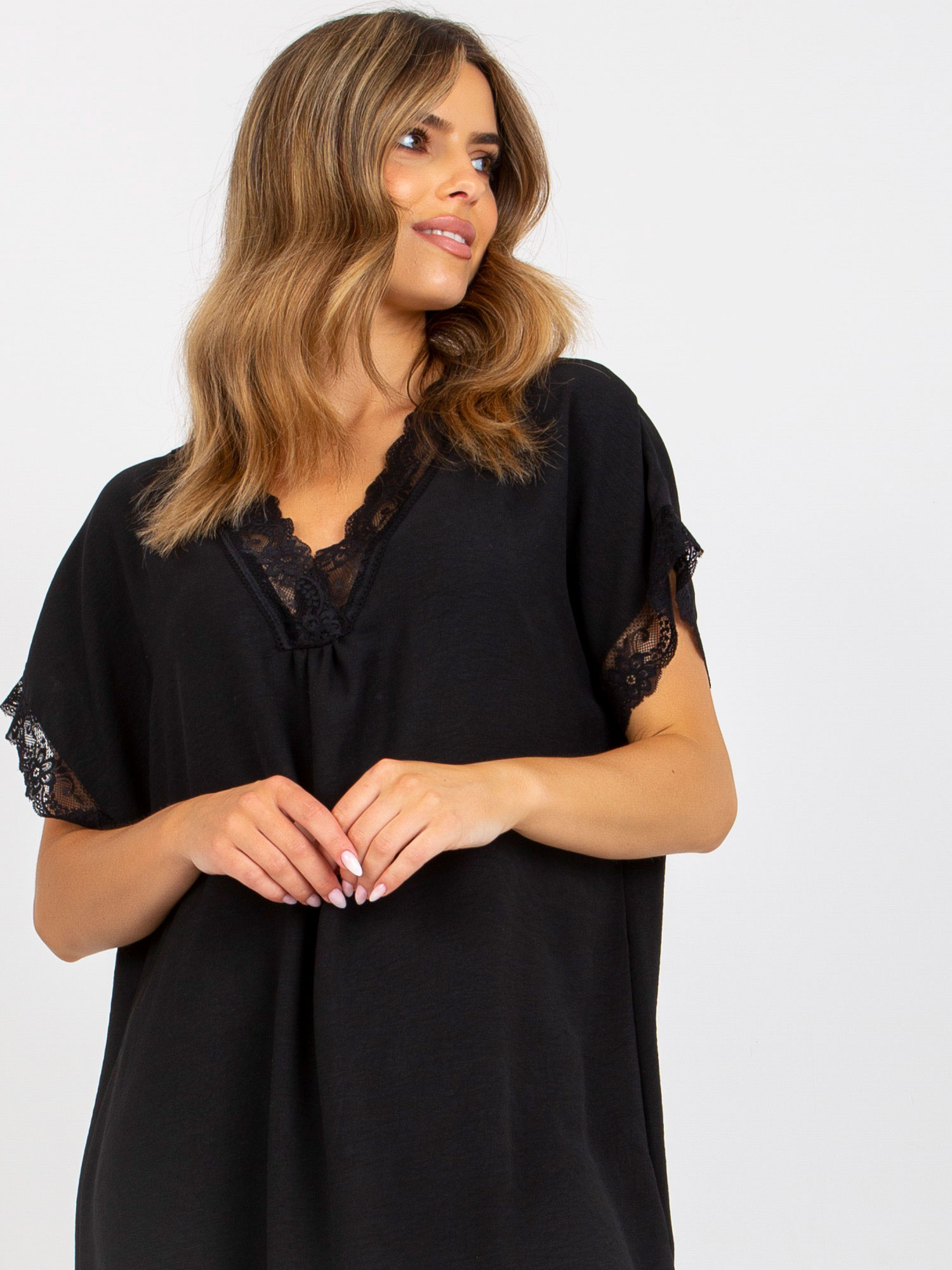 Modelka ma na sobie rozmiar one size. Wymiary modelki: wzrost 173 cm, biust 97 cm, talia 67 cm, biodra 95 cm.