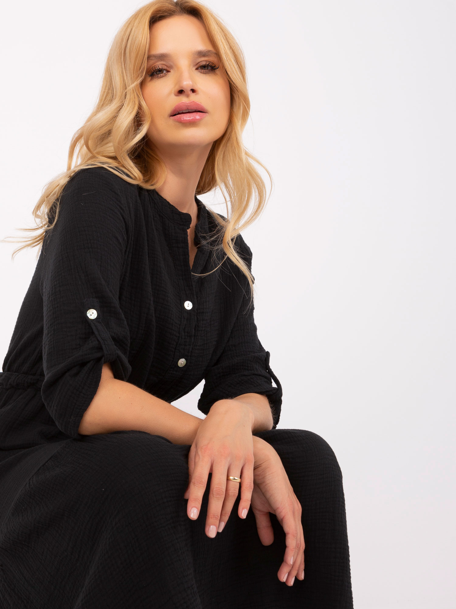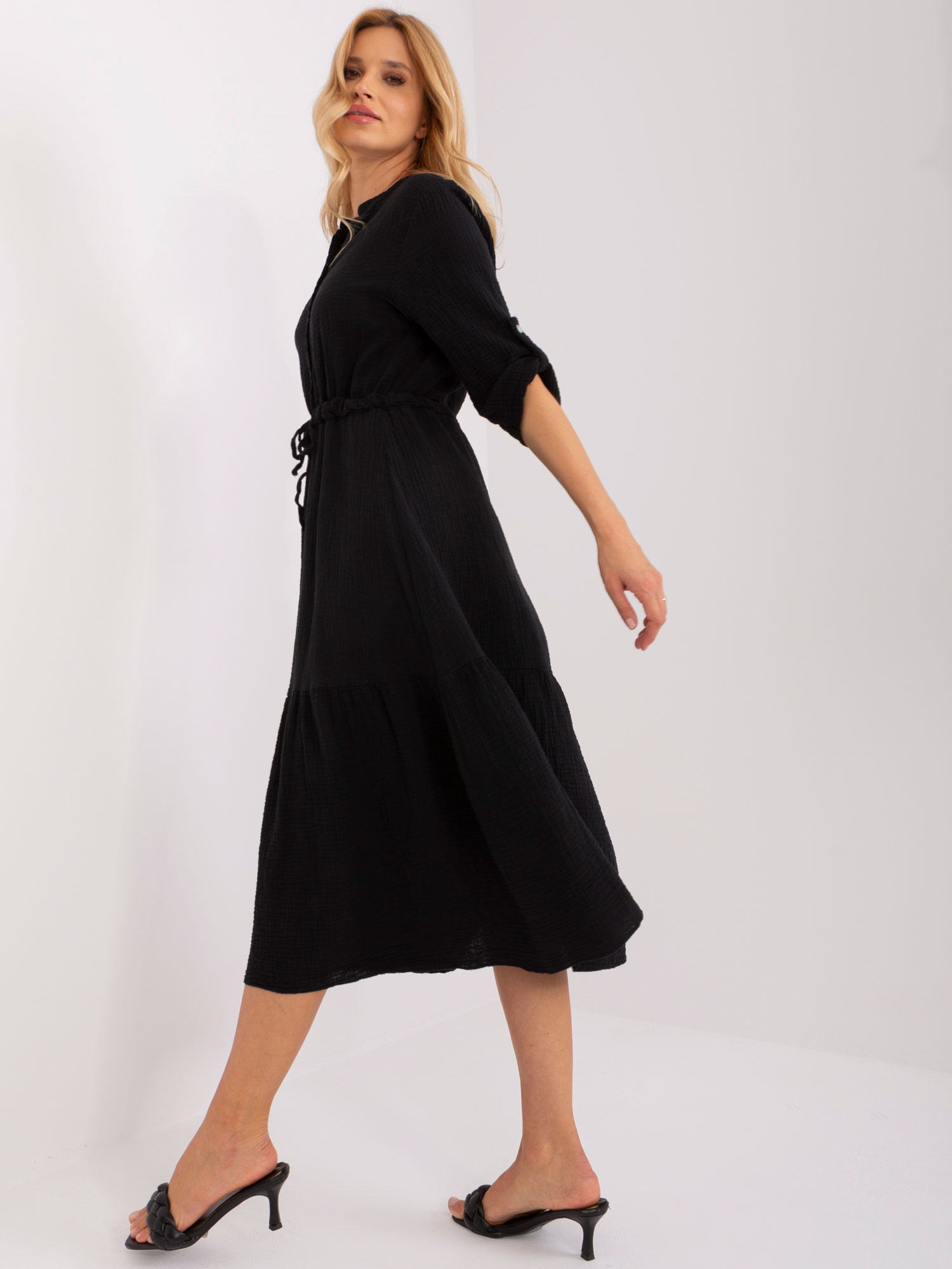 Czarna muślinowa sukienka midi OCH BELLA .