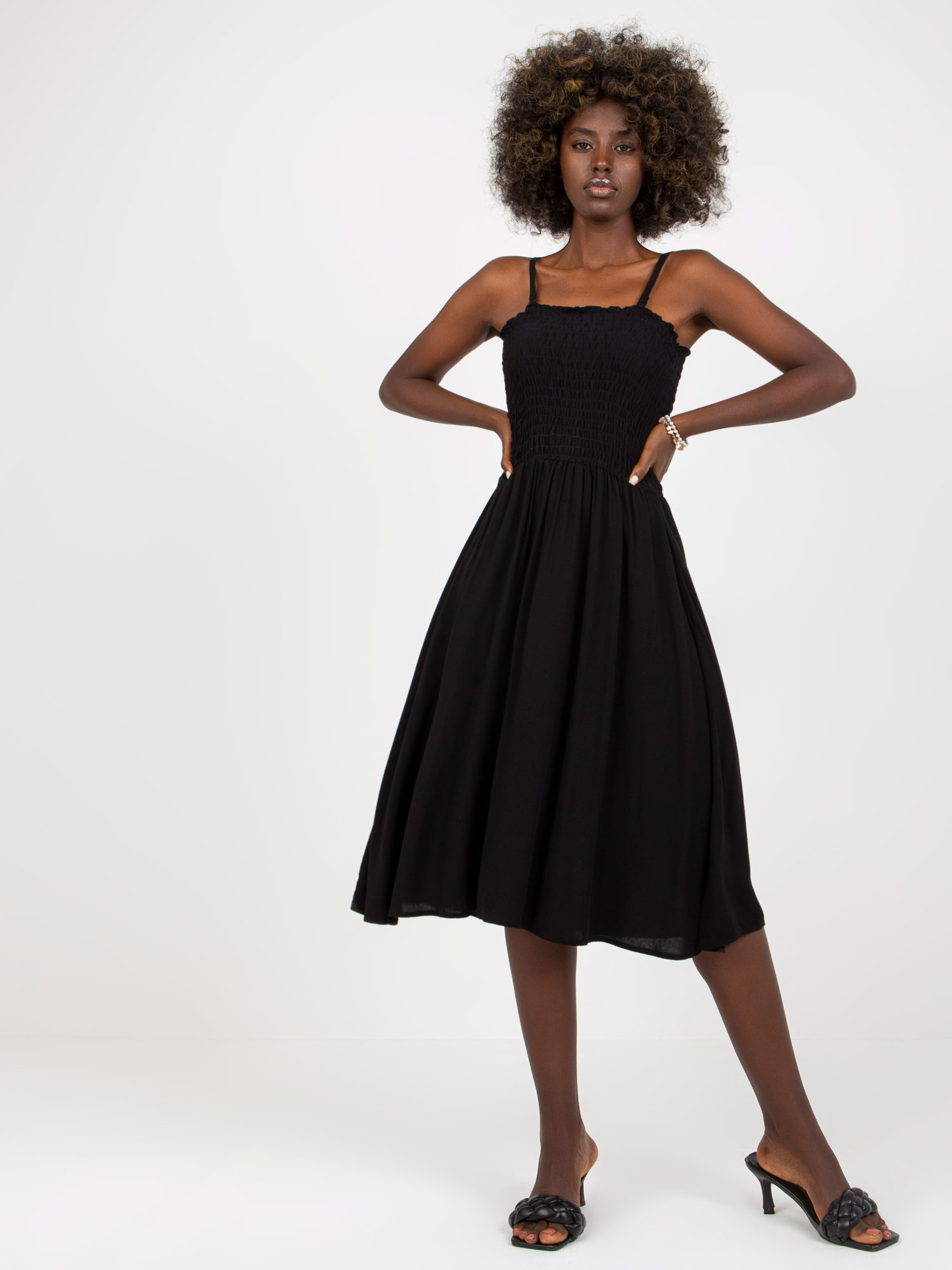 Czarna sukienka w kwiaty z wiązaniem RUE PARIS .