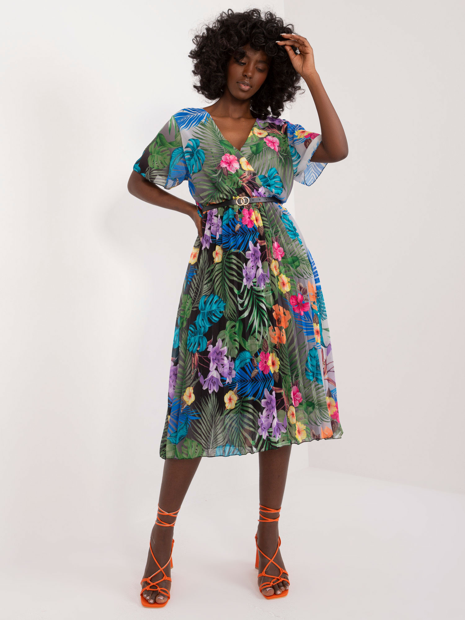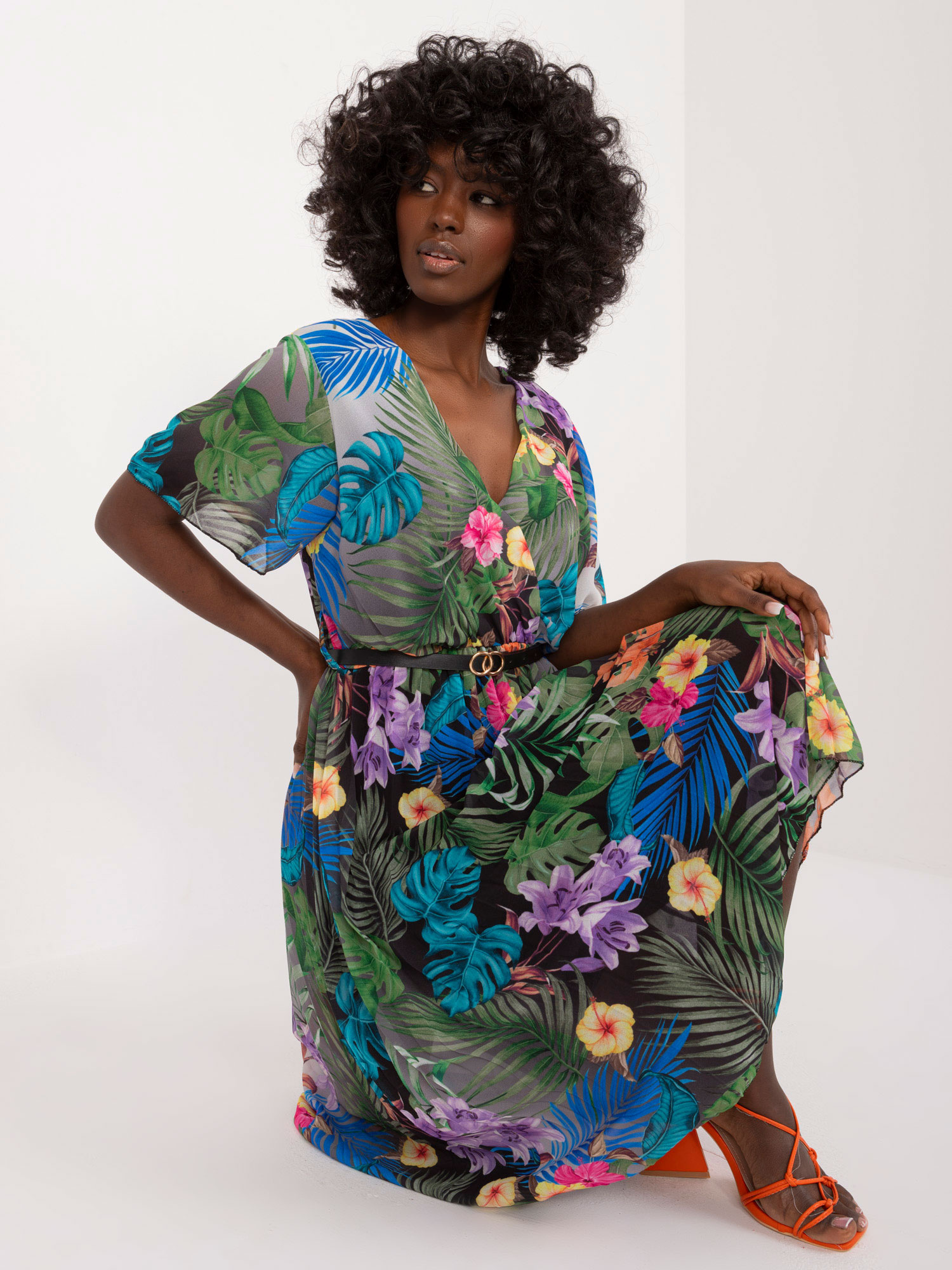 Wymiary sukienki w rozmiarze one size mierzone na płasko: szerokość pod pachami – 43 cm, długość całkowita – 108 cm.
