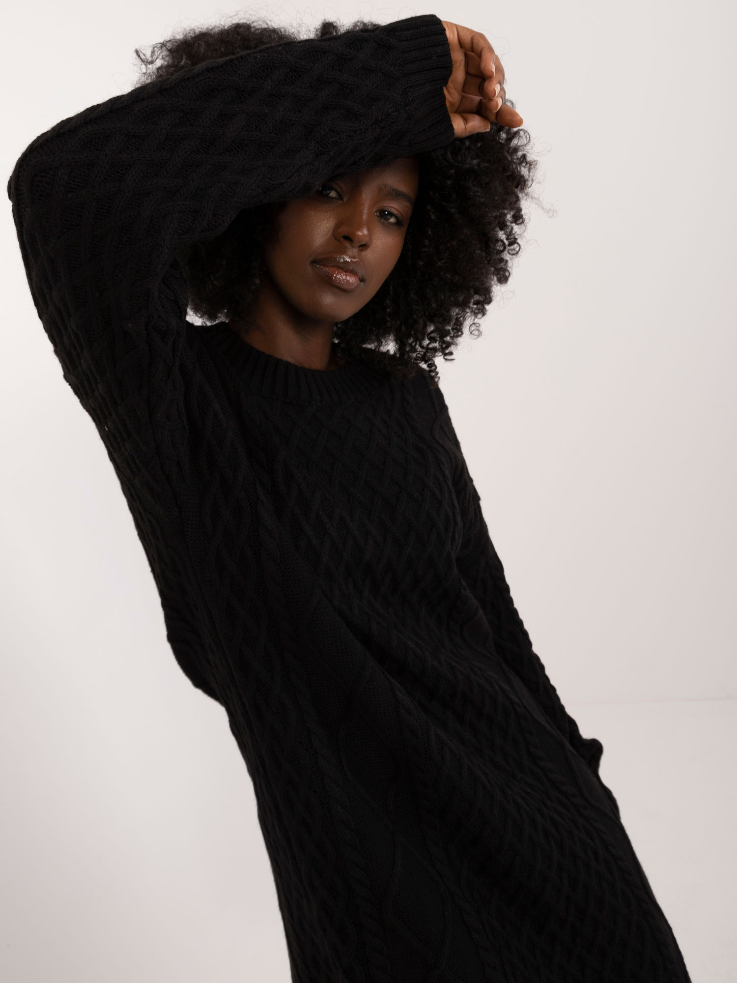 Modelka ma na sobie rozmiar one size. Wymiary modelki: wzrost 168 cm, biust 82 cm, talia 62 cm, biodra 93 cm.