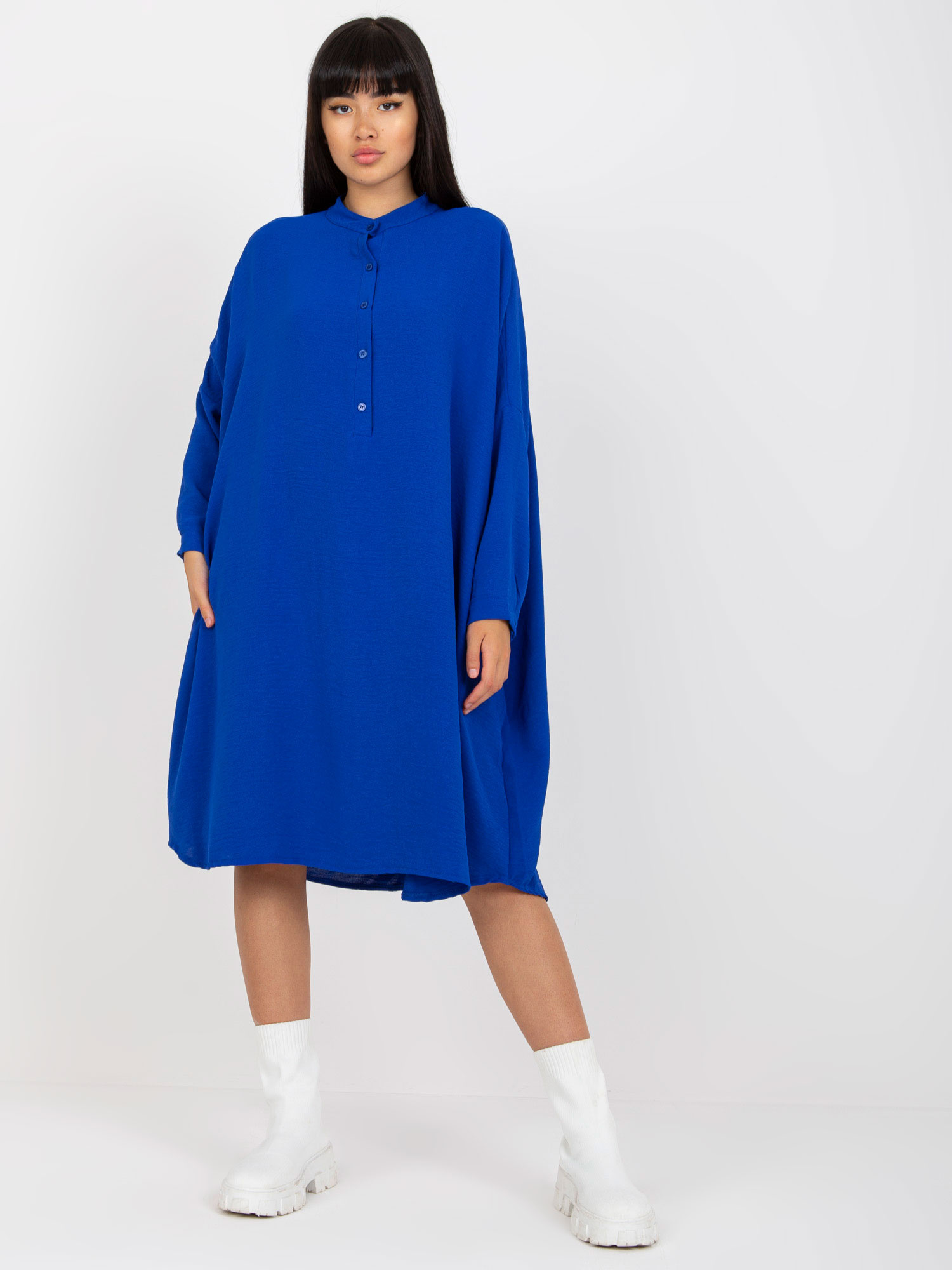 Modelka ma na sobie rozmiar one size. Wymiary modelki: wzrost 176 cm, biust 90 cm, talia 62 cm, biodra 94 cm.