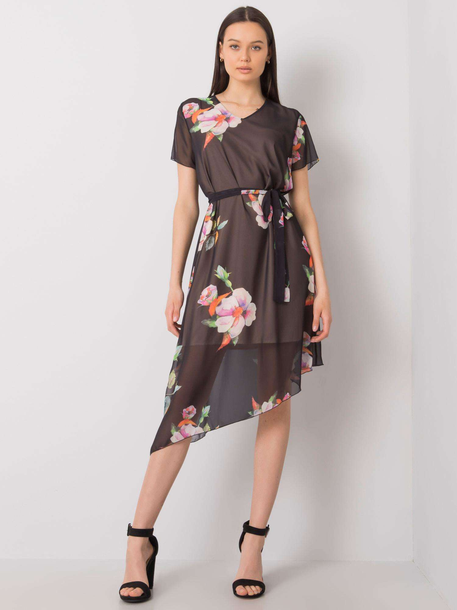 Czarna kwiatowa sukienka damska.