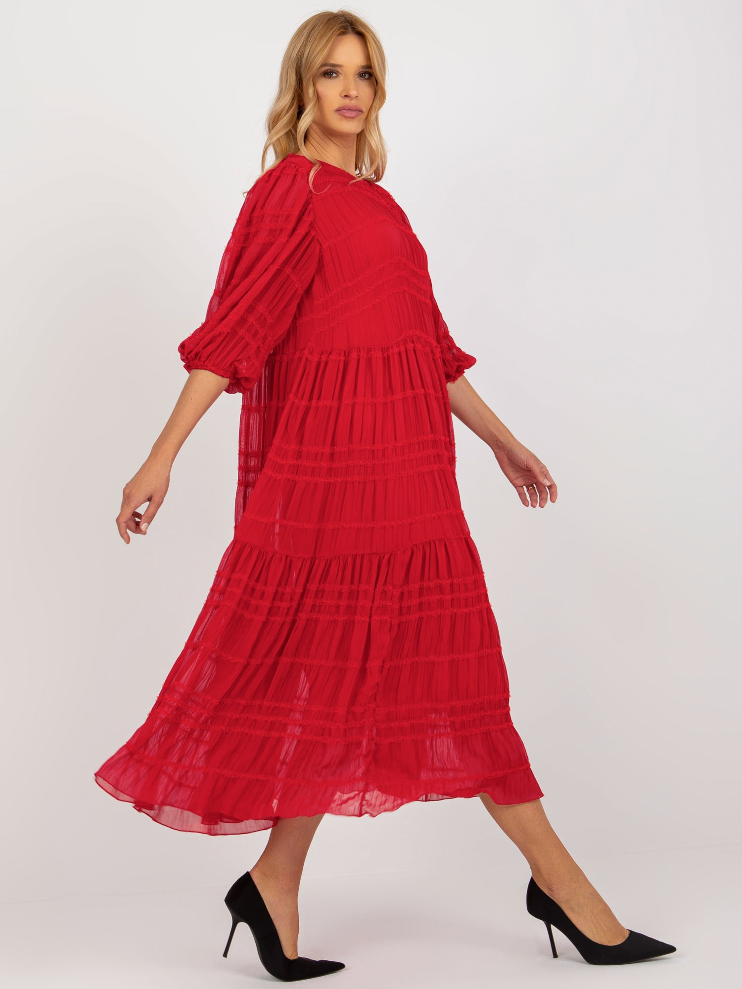 Czerwona rozkloszowana sukienka z rękawem 3/4 .