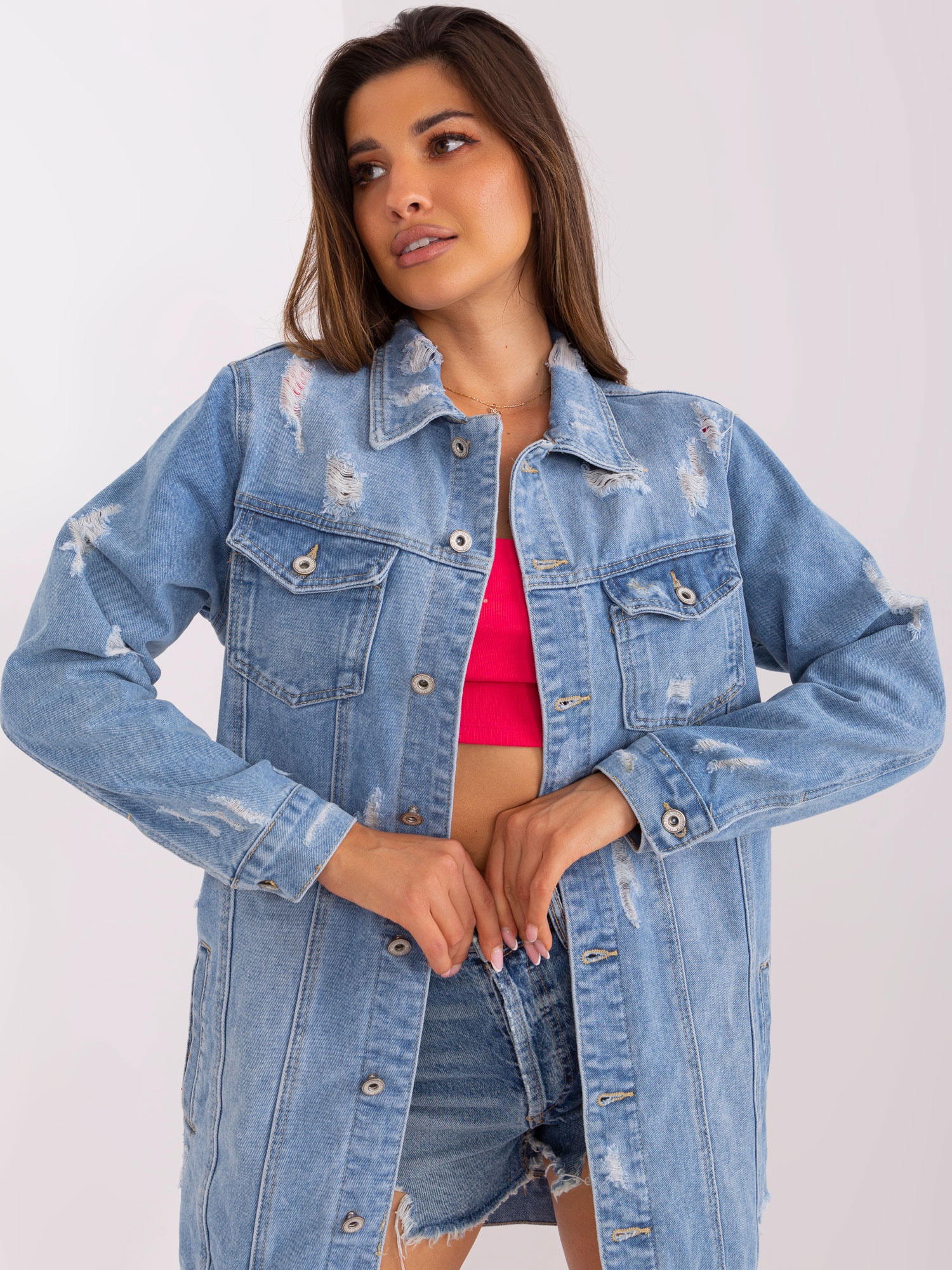 • Modelka: Modelka ma na sobie rozmiar S/M. Wymiary modelki: wzrost 173 cm, biust 89 cm, talia 65 cm, biodra 91 cm