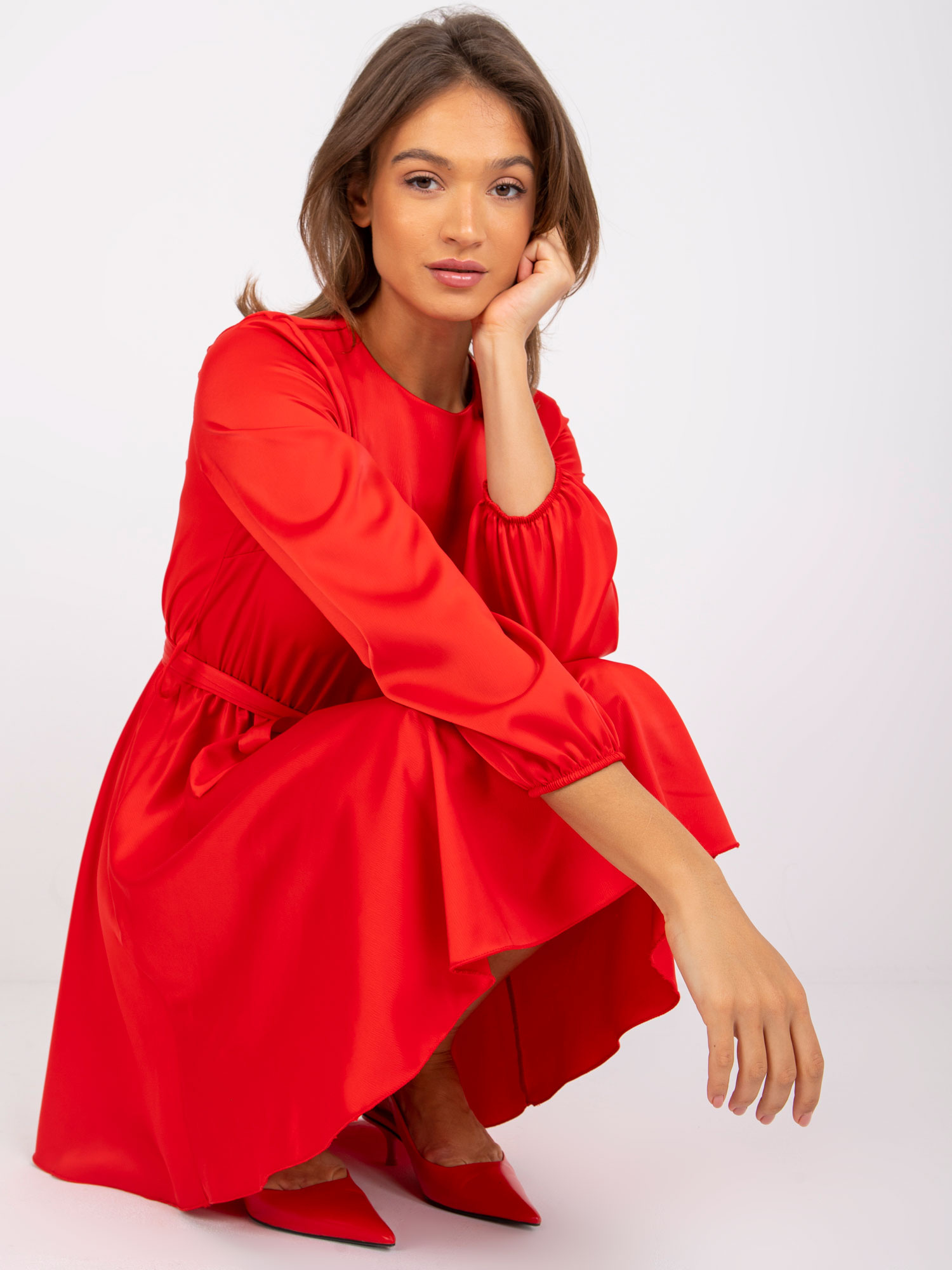 Wymiary sukienki w rozmiarze one size mierzone na płasko: szerokość pod pachami – 45 cm, długość całkowita – 95 cm, długość rękawa – 59 cm.