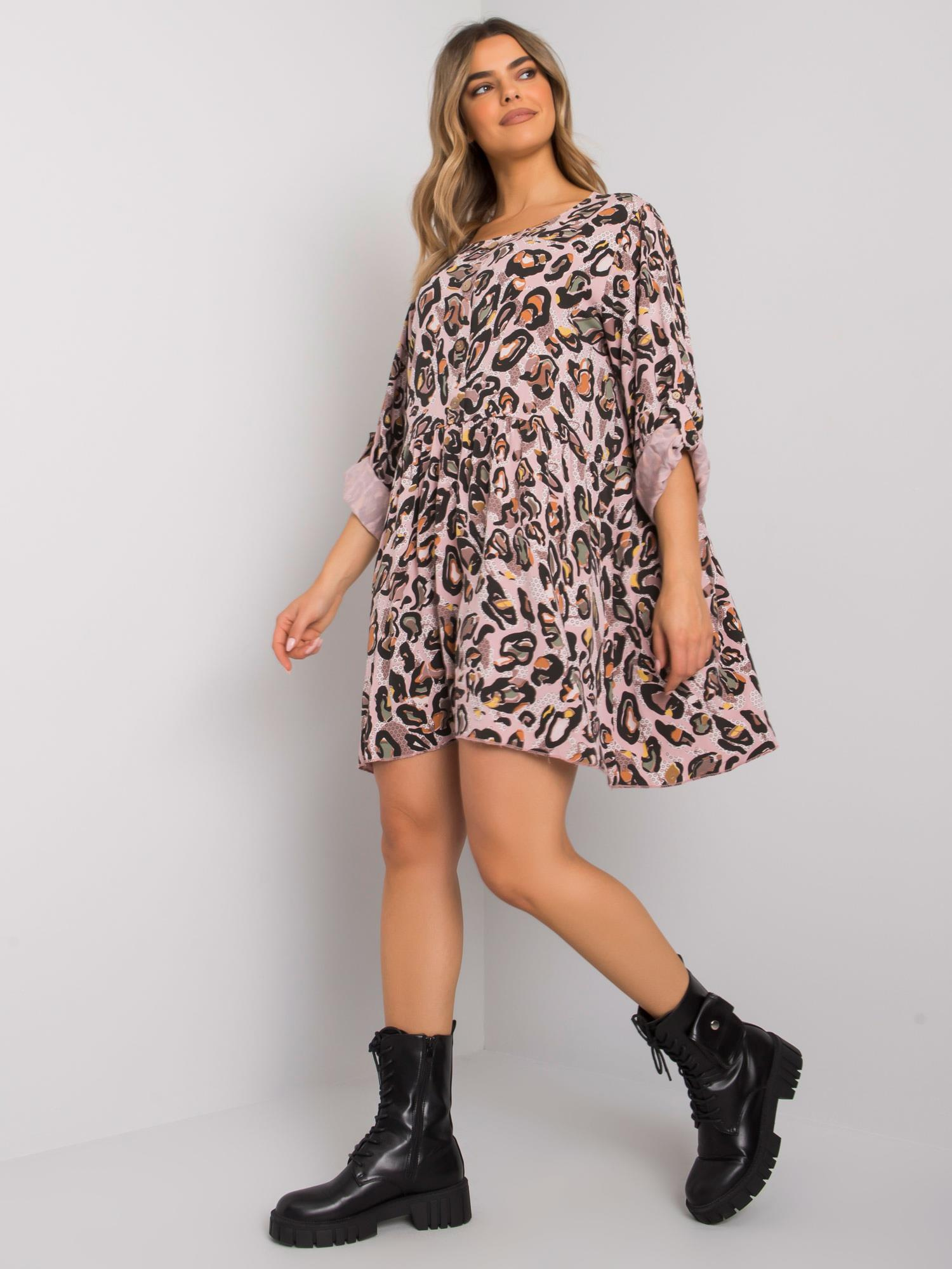 Wymiary sukienki w rozmiarze one size mierzone na płasko: szerokość pod pachami – 46 cm, długość rękawa – 57 cm, długość całkowita – 88 cm.