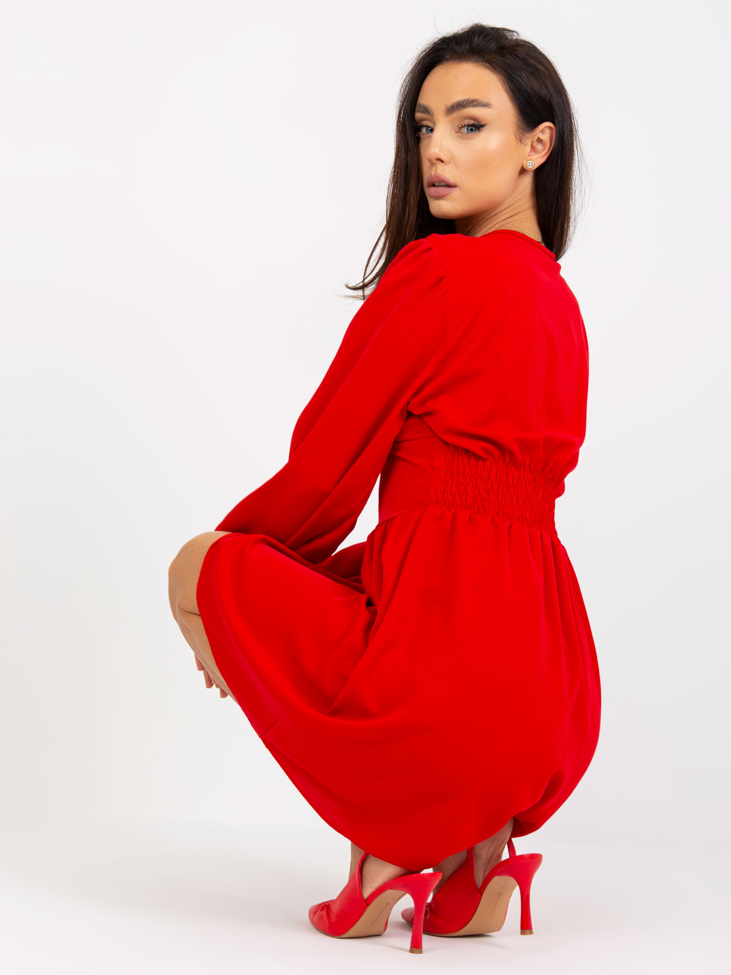 Czerwona sukienka na co dzień z koronką przy dekolcie Libby .