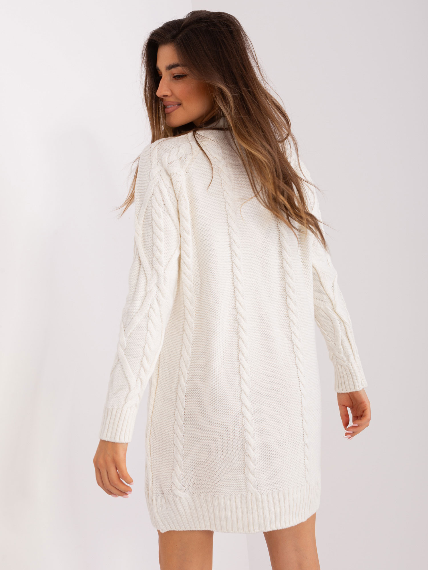 Ecru mini sukienka dzianinowa w warkocze
