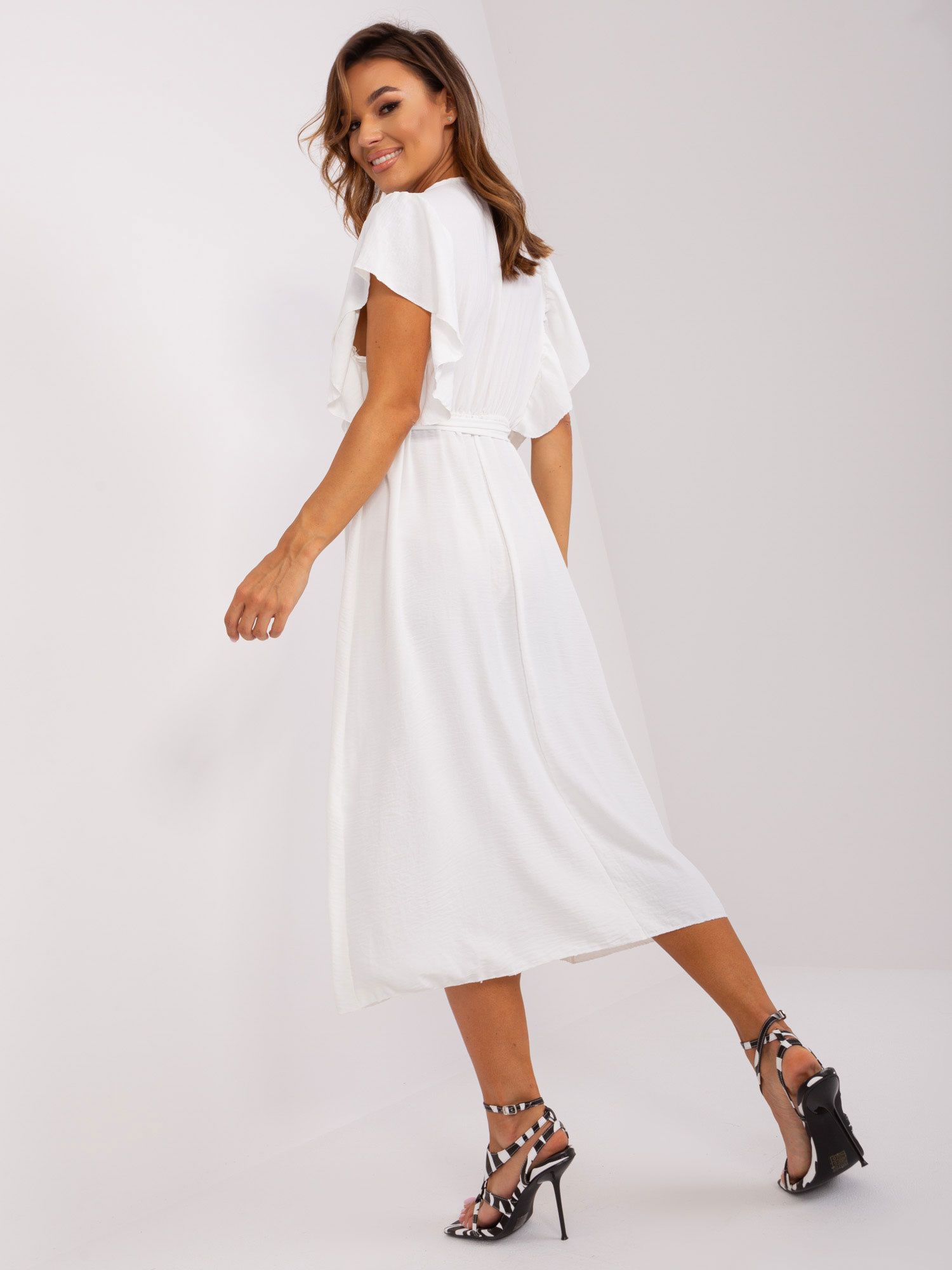 Ecru rozkloszowana sukienka z wiskozy .