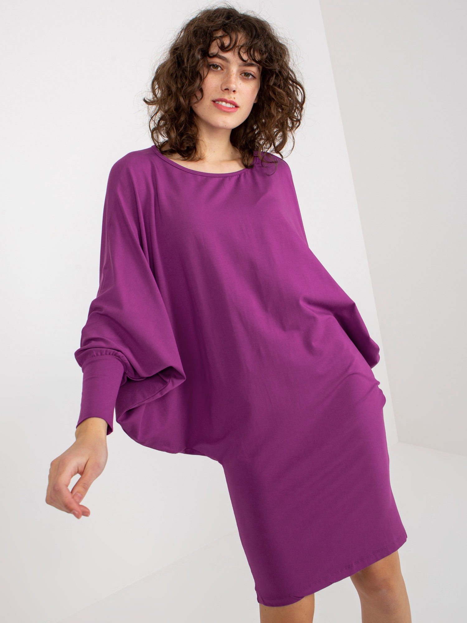 Fioletowa damska sukienka nietoperz z wiskozy .
