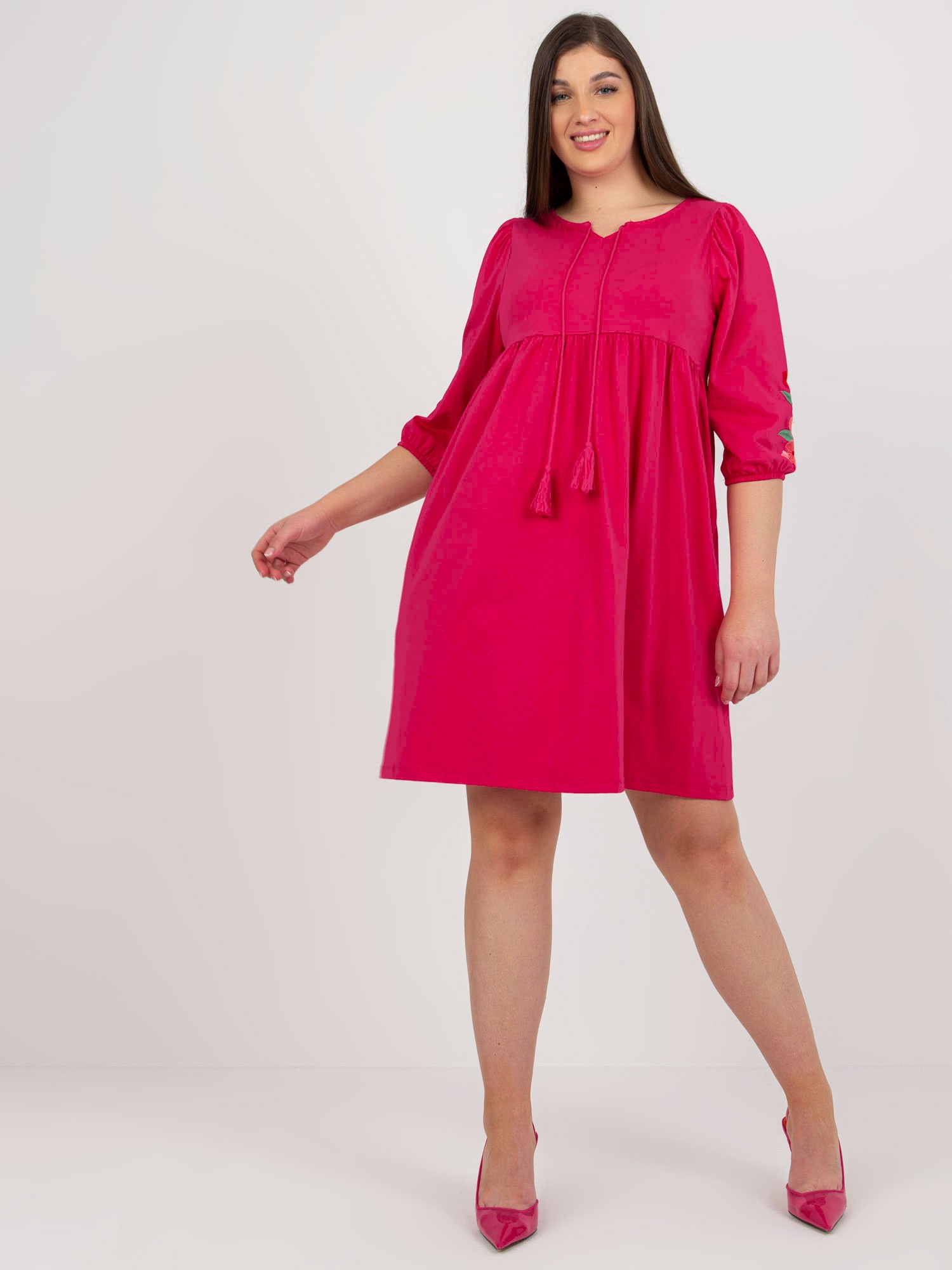 Fuksjowa rozkloszowana sukienka plus size z haftem .