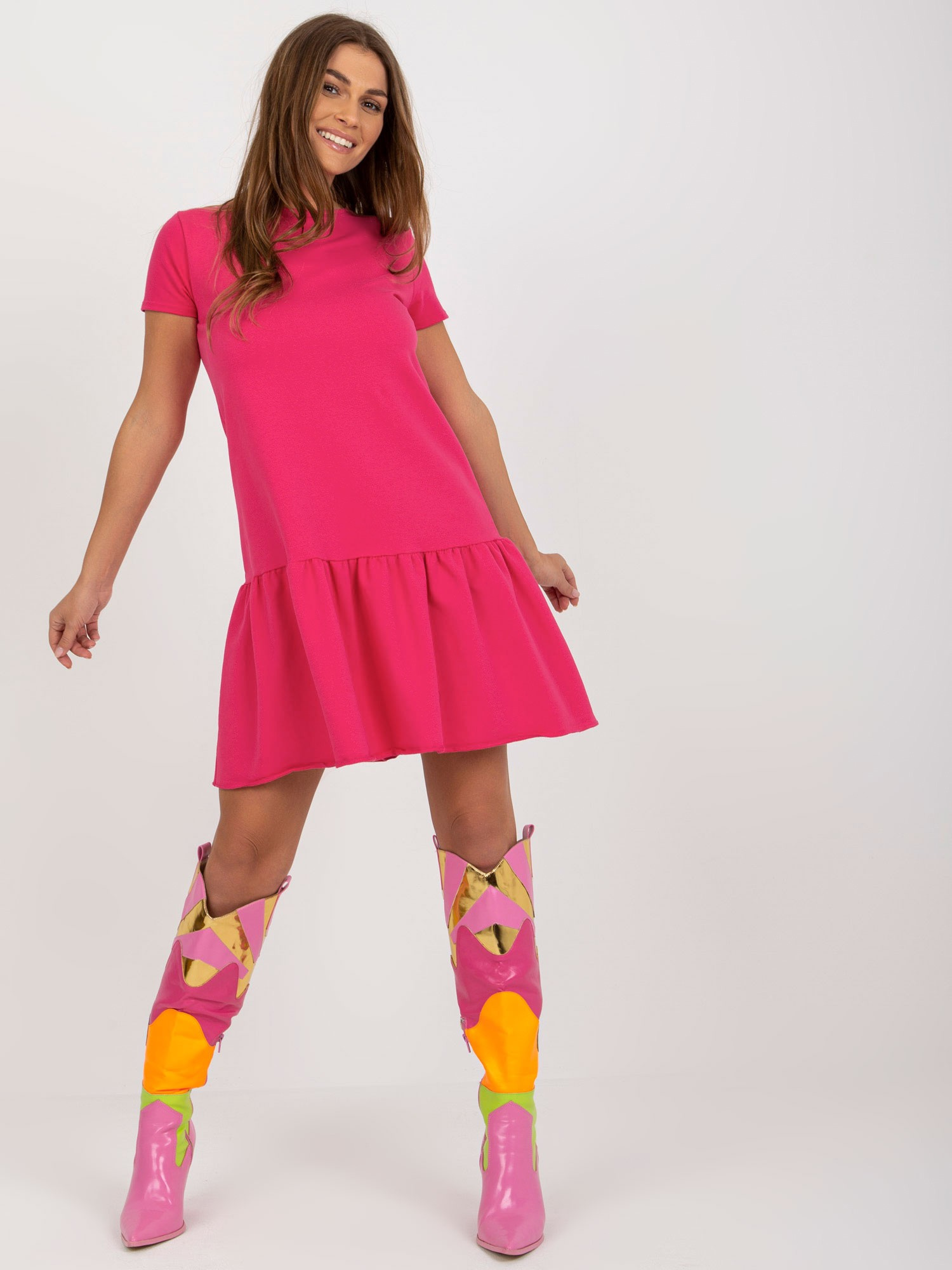 Fuksjowa mini sukienka z falbaną RUE PARIS .