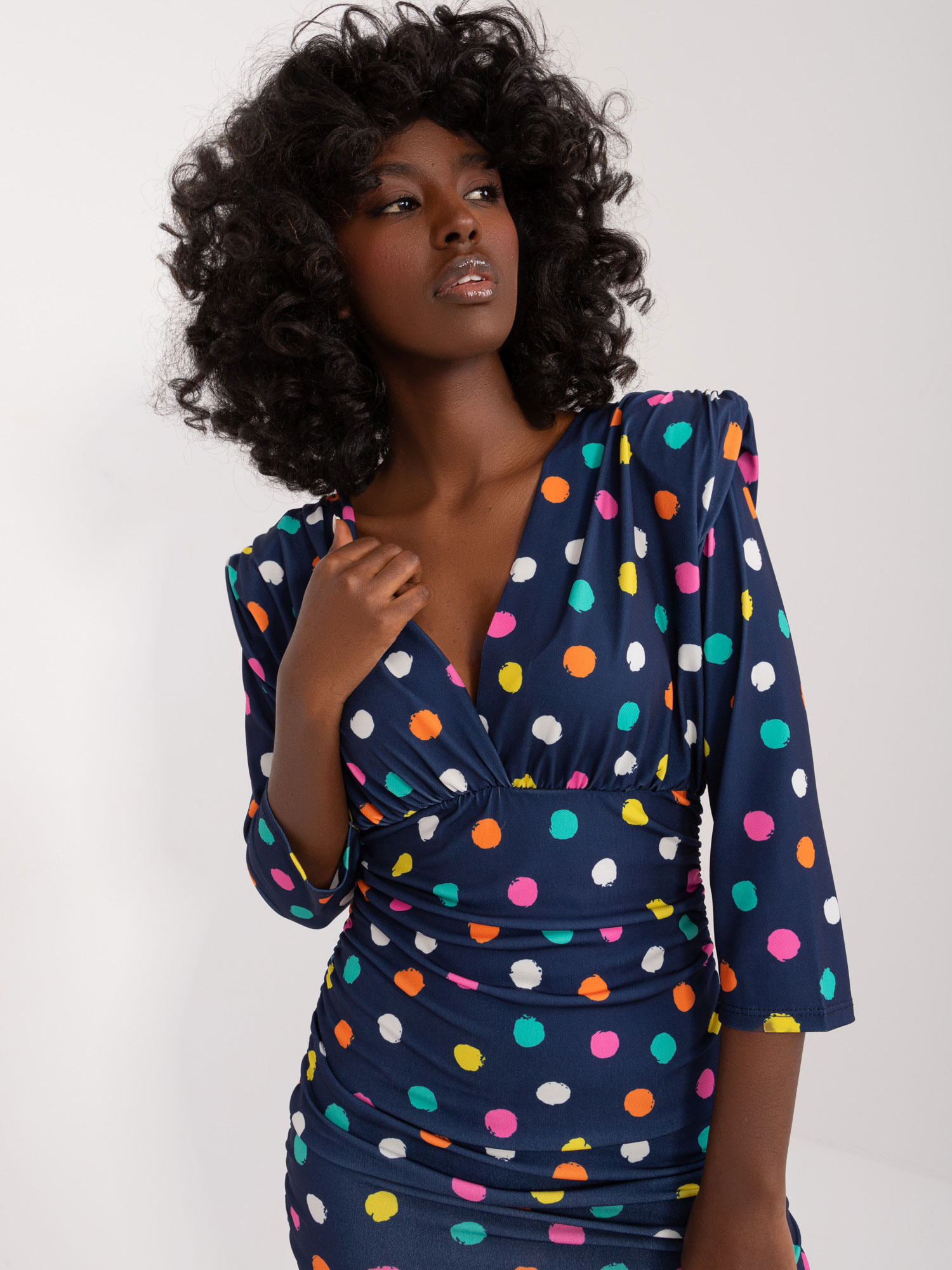 Wymiary sukienki w rozmiarze one size mierzone na płasko: szerokość pod pachami – 40 cm, długość rękawa – 40 cm, długość całkowita – 90 cm.