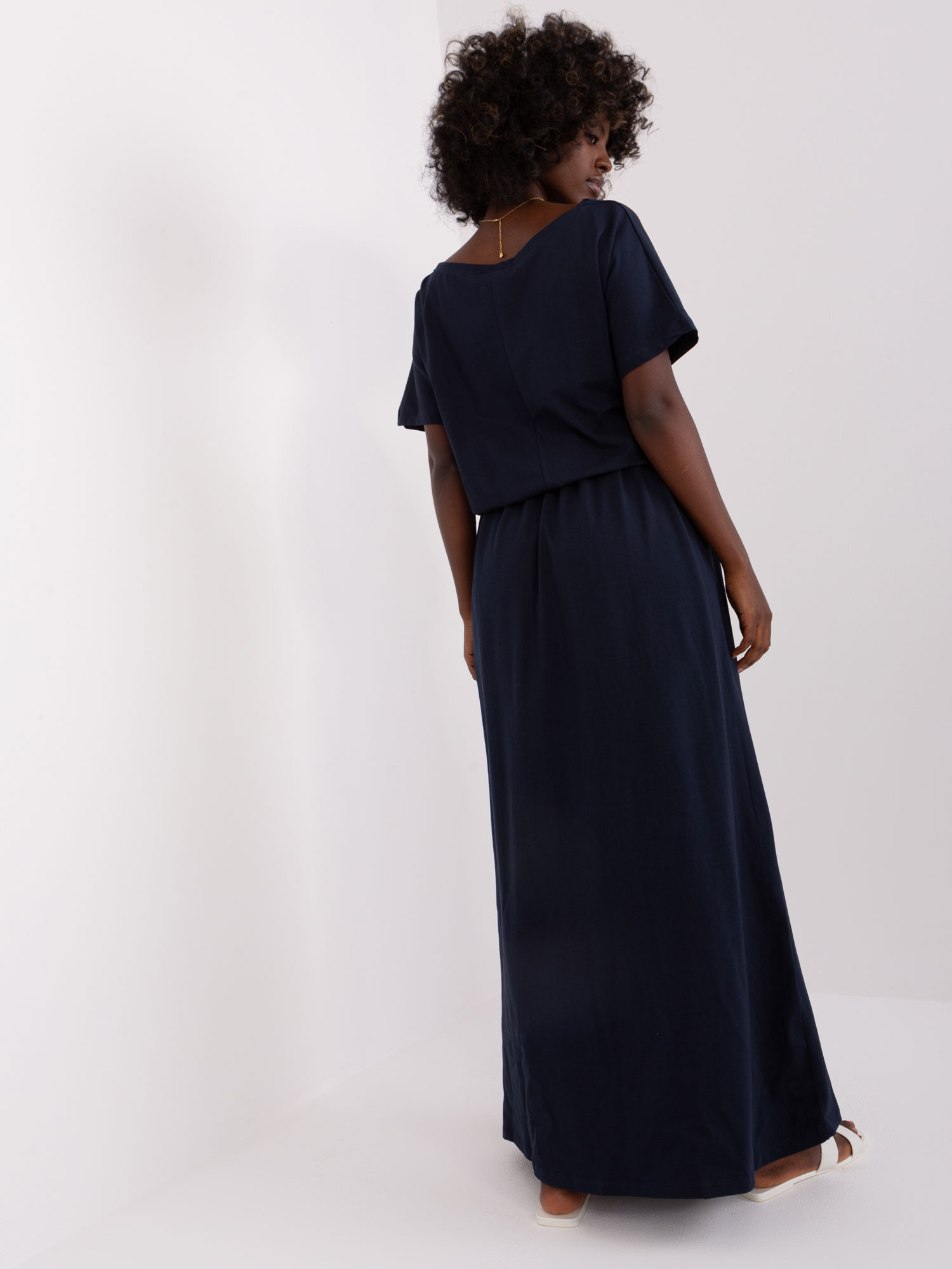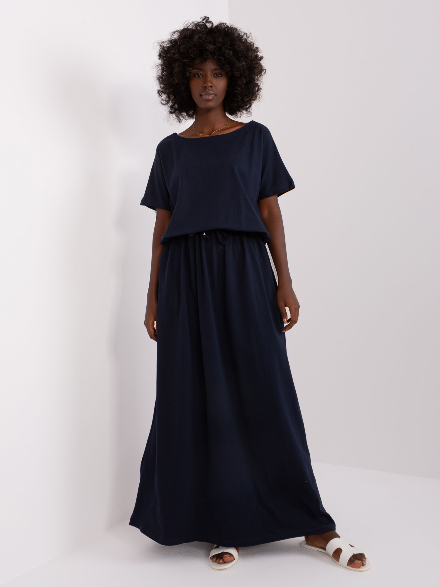Granatowa casualowa sukienka basic z krótkim rękawem .