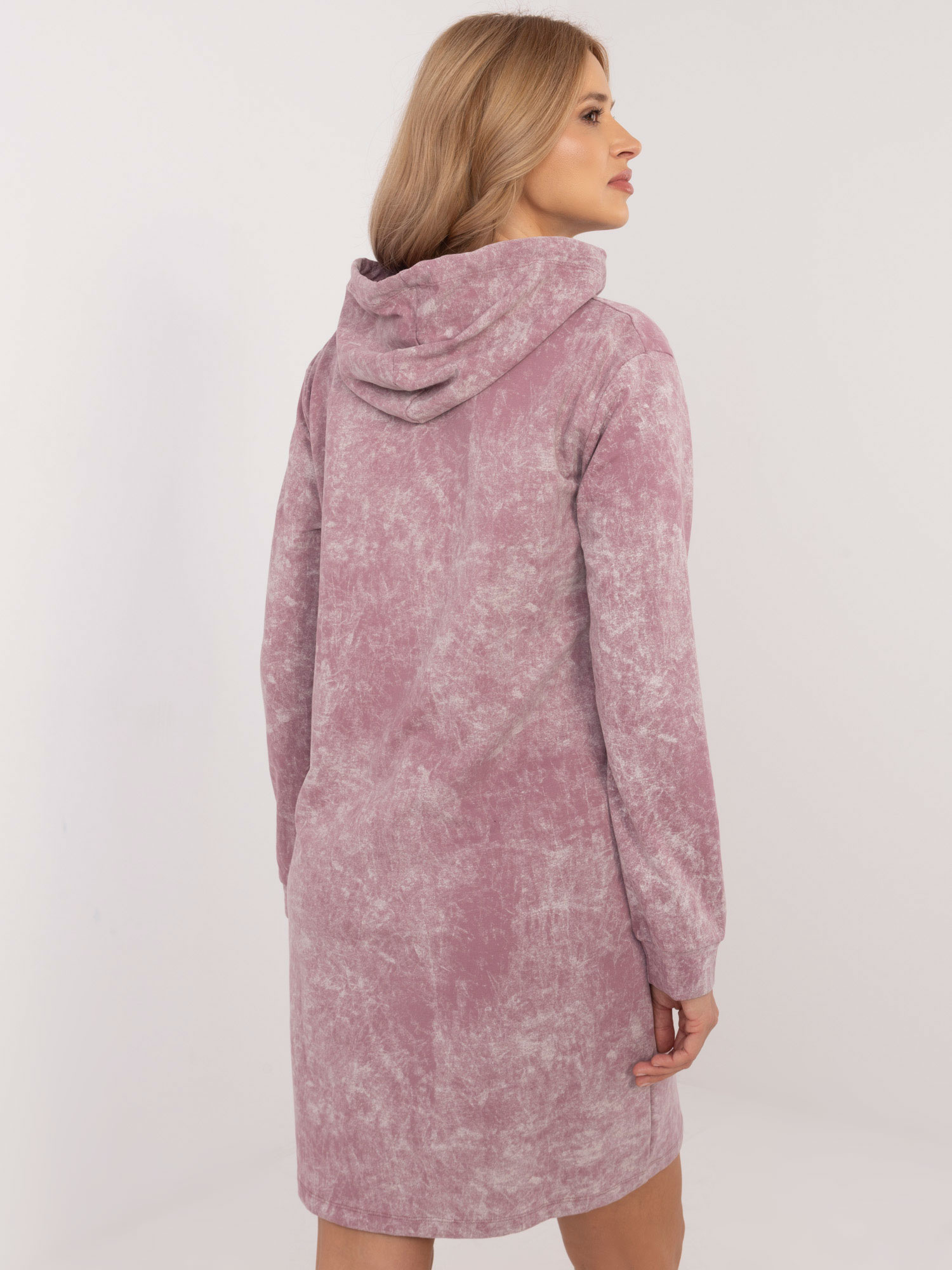 Wymiary sukienki w rozmiarze one size mierzone na płasko: szerokość pod pachami – 52 cm, długość rękawa – 59 cm (od szwu), długość całkowita – 90 cm.