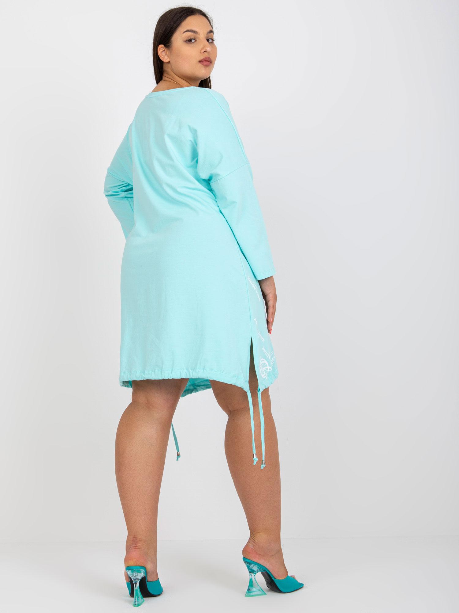 Wymiary sukienki w rozmiarze S/M mierzone na płasko: szerokość pod pachami – 55 cm, długość rękawa – 41 cm, długość całkowita – 123 cm.