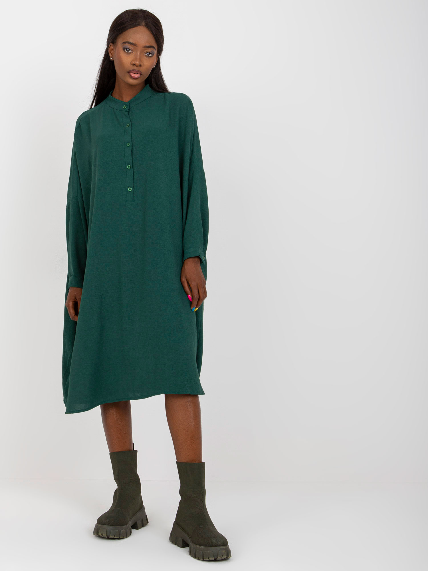 Wymiary sukienki w rozmiarze 36 mierzone na płasko: szerokość pod pachami – 48 cm, długość rękawa – 44 cm, długość całkowita – 97 cm.