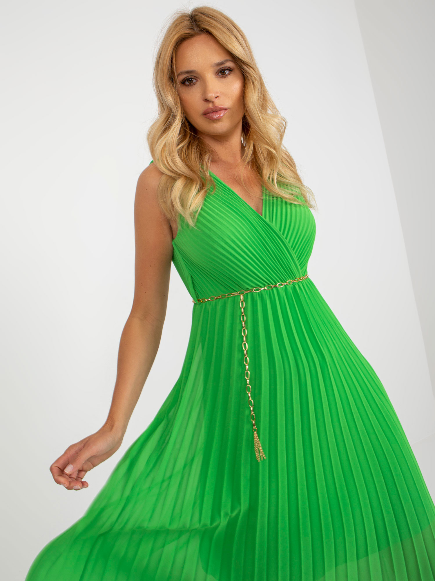 Jasnozielona midi sukienka z kopertowym dekoltem .