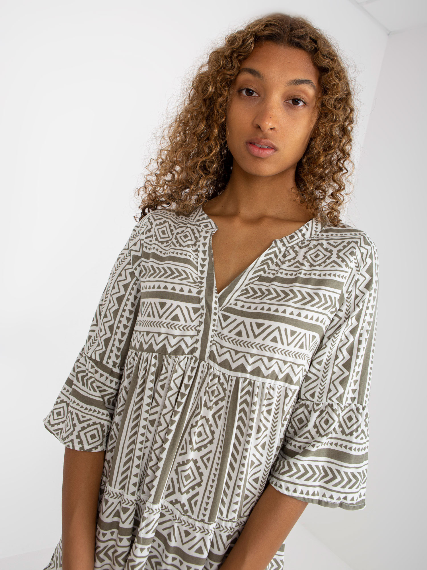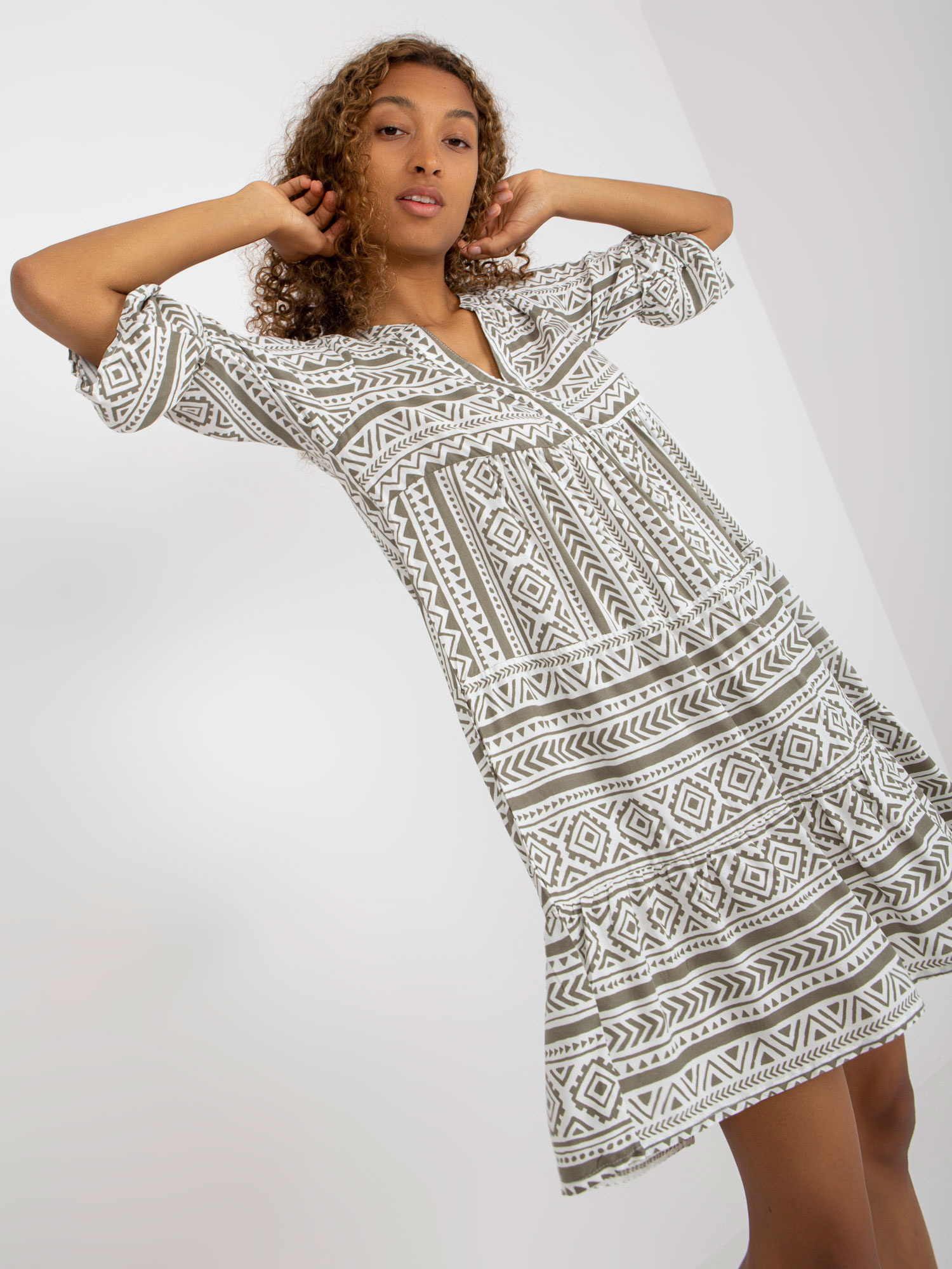 Khaki letnia sukienka z printami z wiskozy SUBLEVEL .