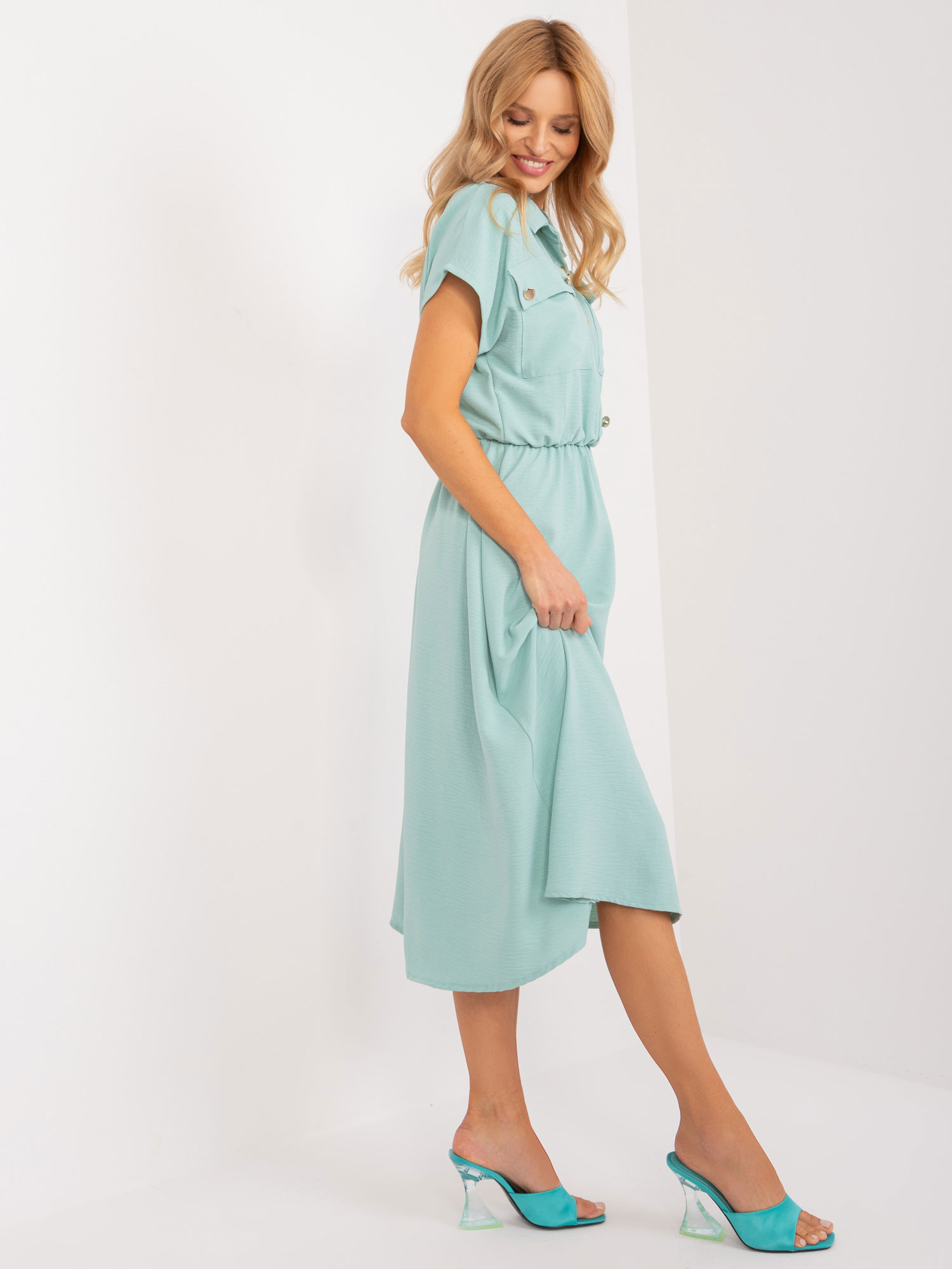 Wymiary sukienki w rozmiarze one size mierzone na płasko: szerokość pod pachami – 58 cm, długość całkowita – 122 cm.