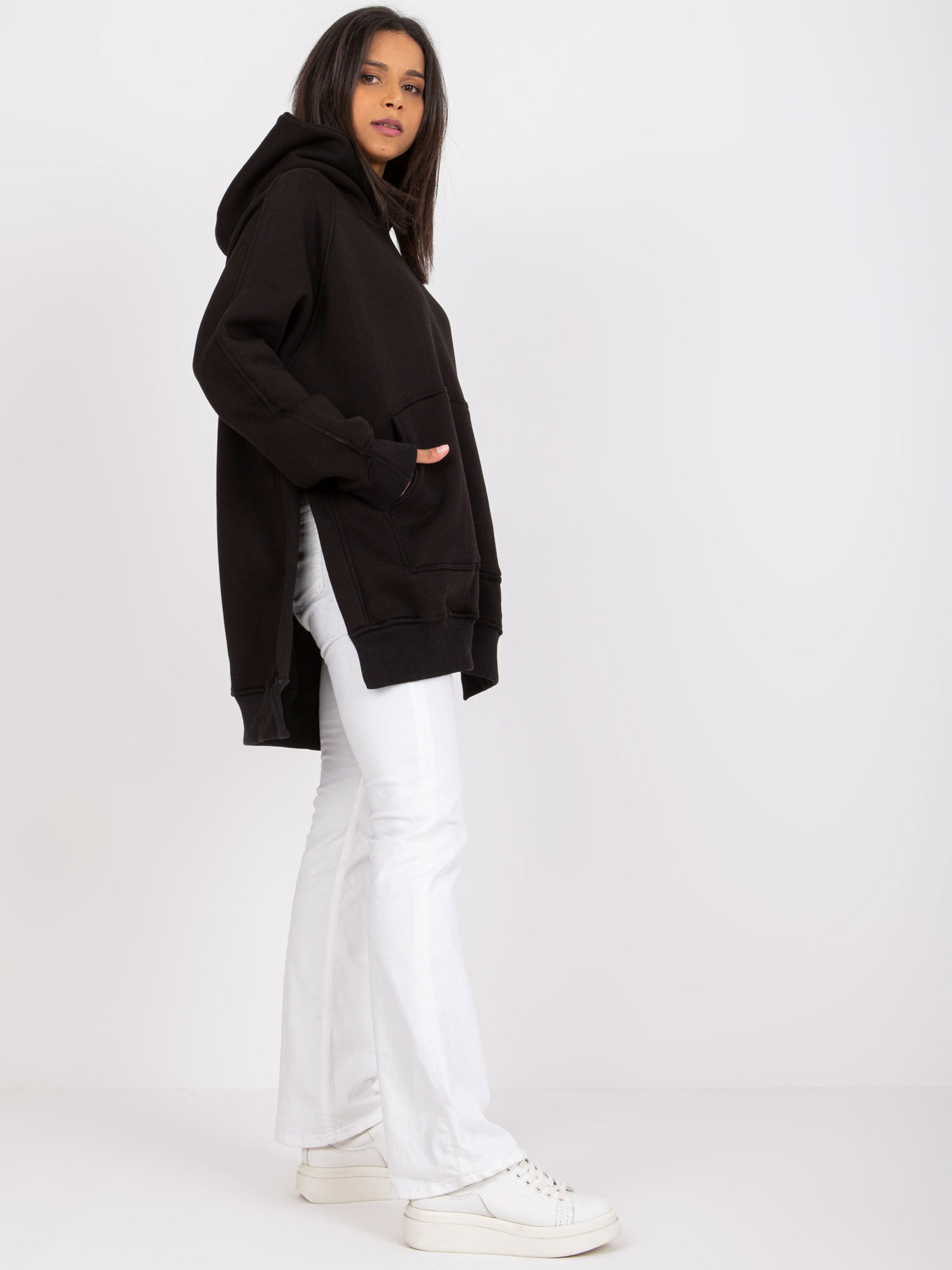 - Modelka: Modelka ma na sobie rozmiar one size. Wymiary modelki: wzrost 173 cm, biust 85 cm, talia 62 cm, biodra 95 cm
