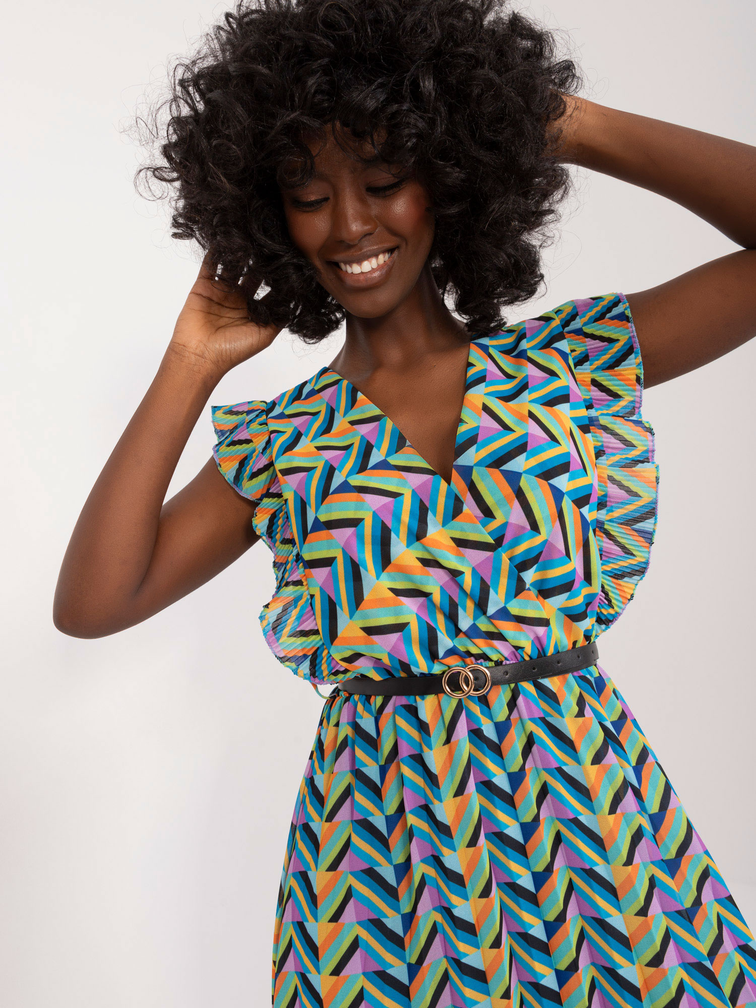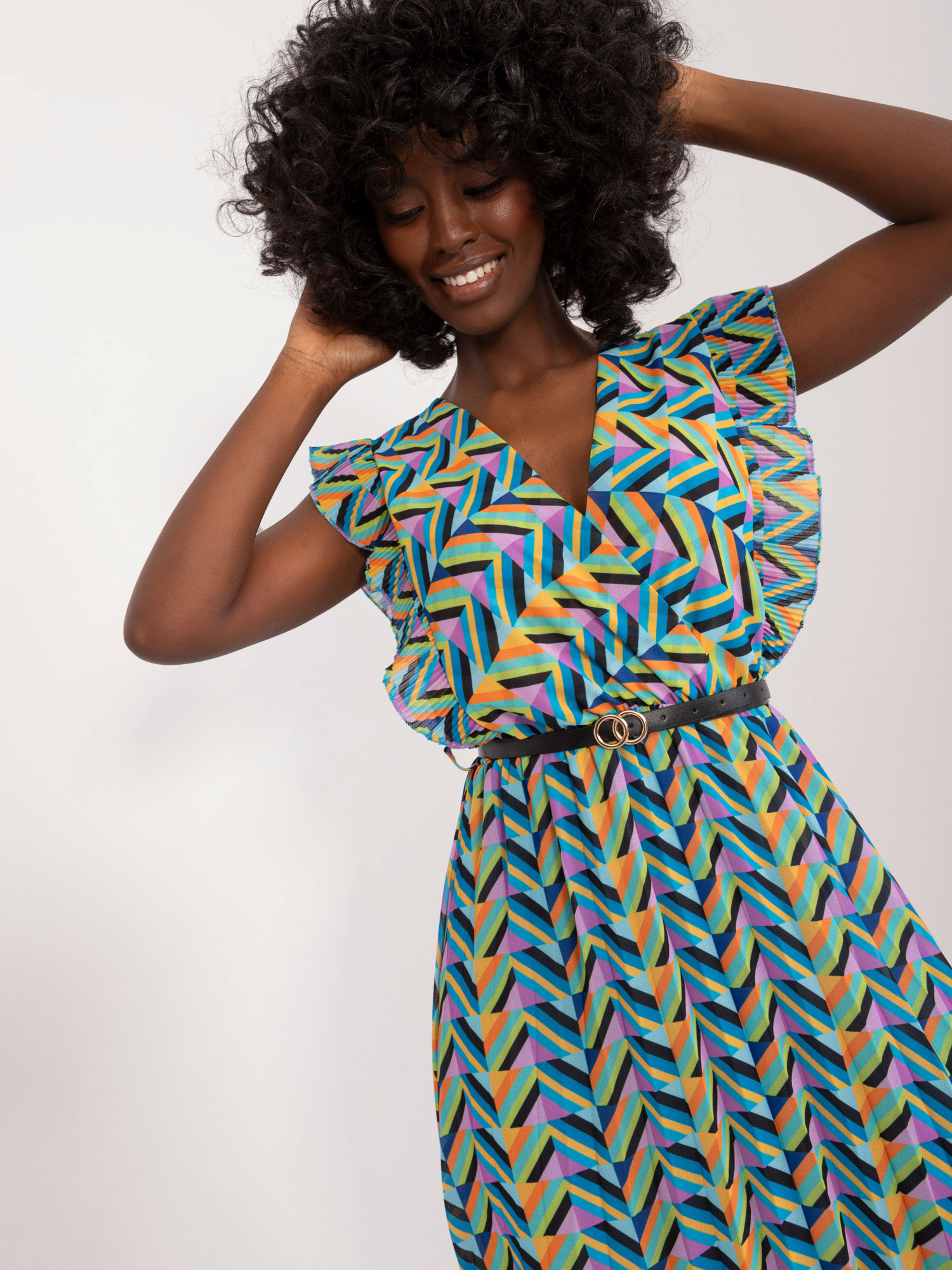 • Modelka: Modelka ma na sobie rozmiar one size. Wymiary modelki: wzrost 168 cm, biust 82 cm, talia 62 cm, biodra 93 cm
