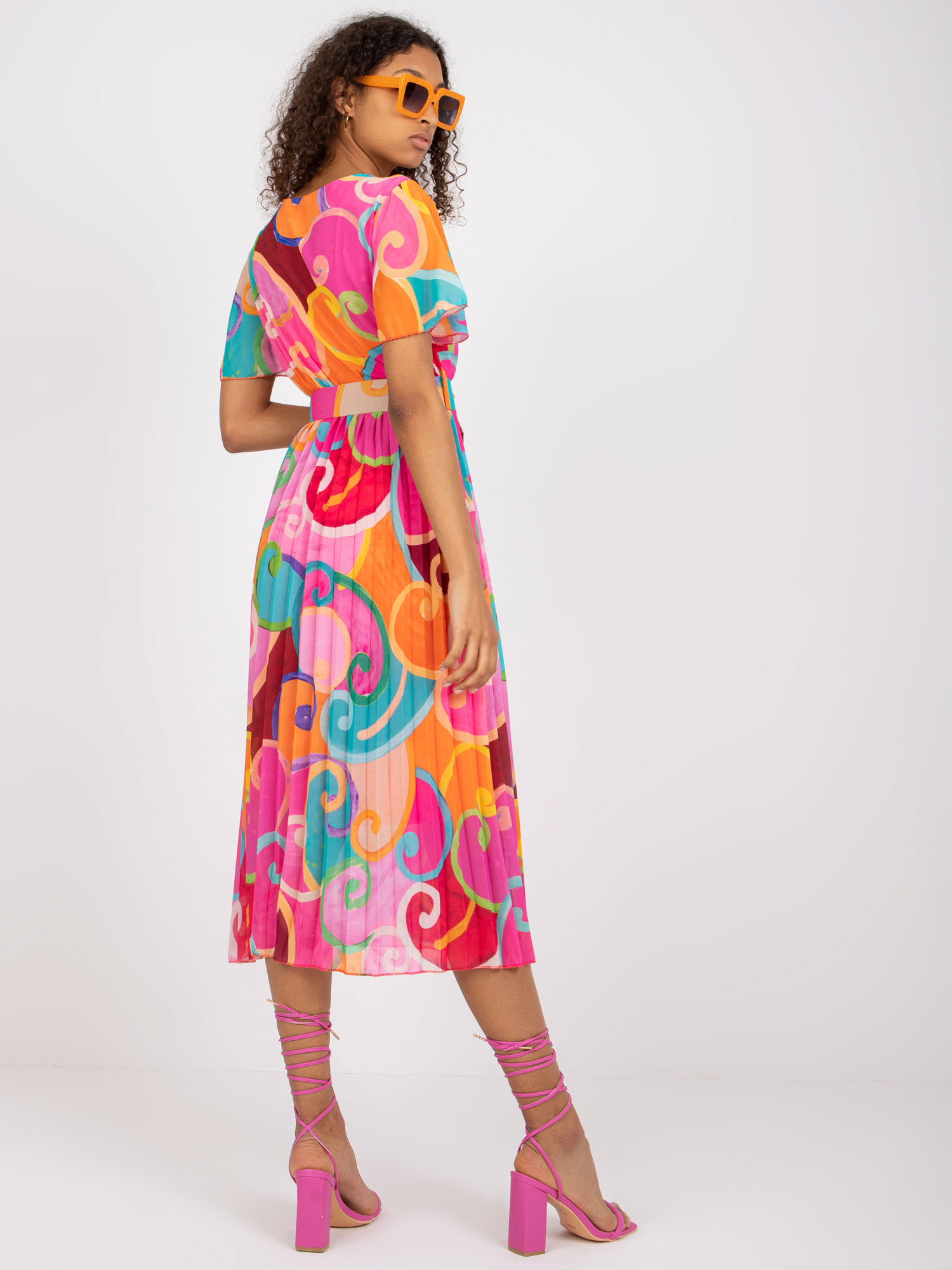 Wymiary sukienki w rozmiarze one size mierzone na płasko: szerokość pod pachami – 44 cm, długość całkowita – 122 cm.